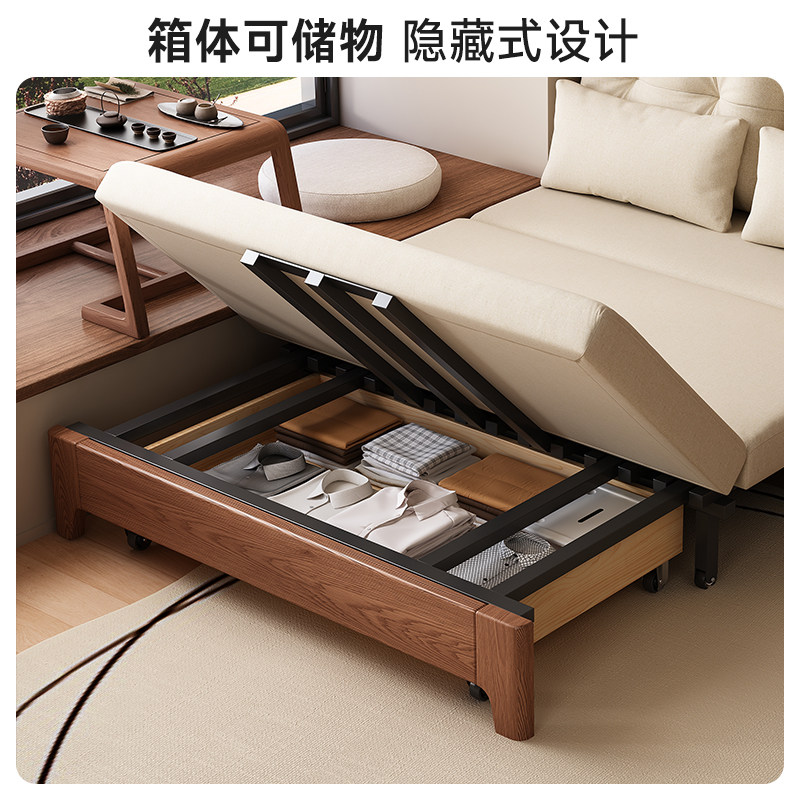 📚 实木沙发床双人1米5小户型家用书房客厅客卧可伸缩折叠两用沙发床