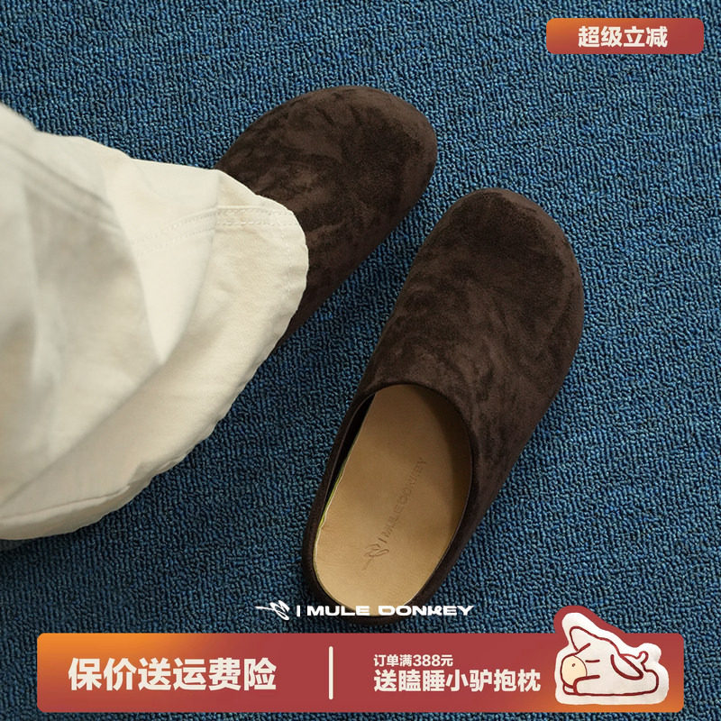 📚 多嘴驴Donkey棕色反绒勃肯鞋男女春季复古拖鞋一脚蹬外穿穆勒鞋子