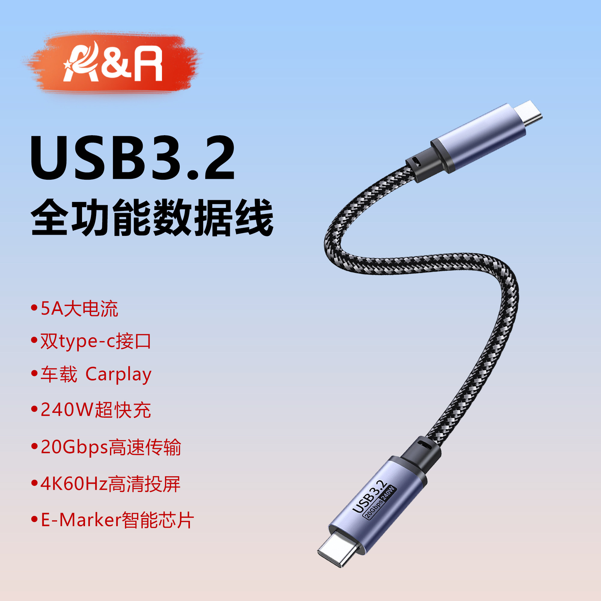 📚 AR全功能双typec口数据线USB3.2雷电4/3多功能PD240W快充4K@60Hz高清投屏显示器电脑20Gbps传输拓展坞硬盘线