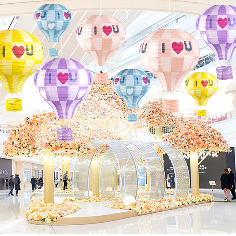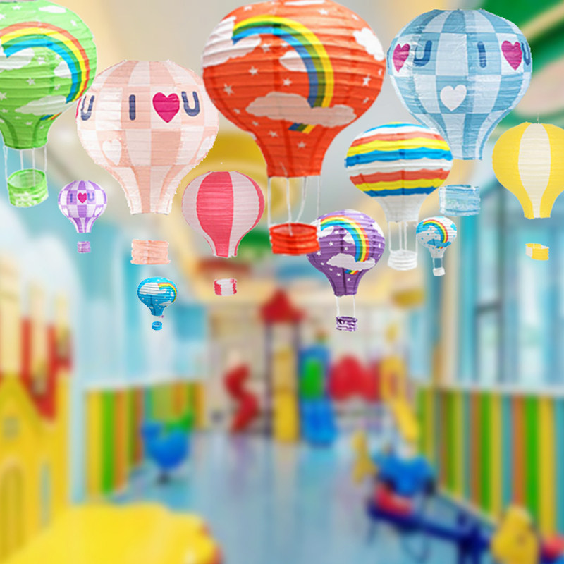 📚 纸质热气球挂饰4S店商场橱窗幼儿园走廊节日布置场景吊饰创意灯笼
