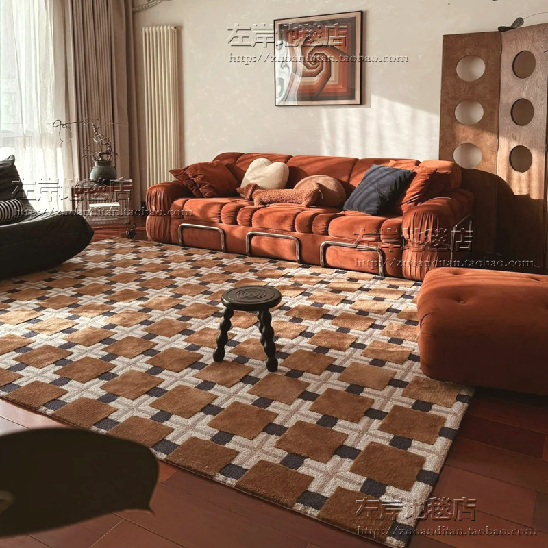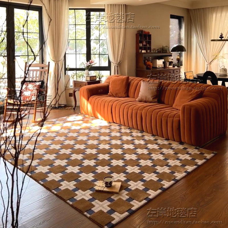 📚 立体凹凸美式复古欧式中古客厅茶几卧室床尾书房衣帽间手工地毯