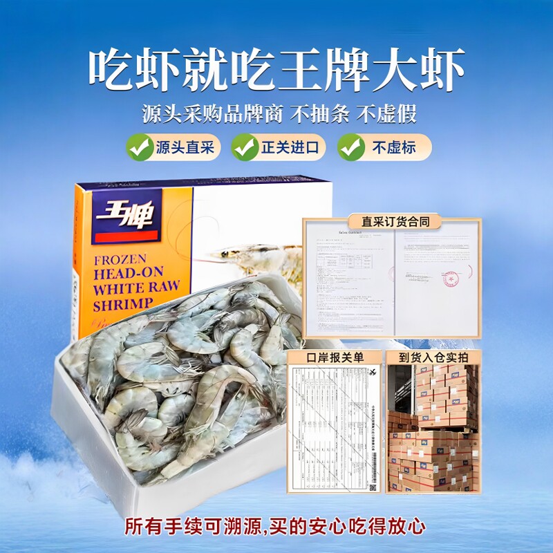 📚 王牌盐冻白虾大虾厄瓜多尔白虾3040/50/60南美白对虾带头带壳包邮