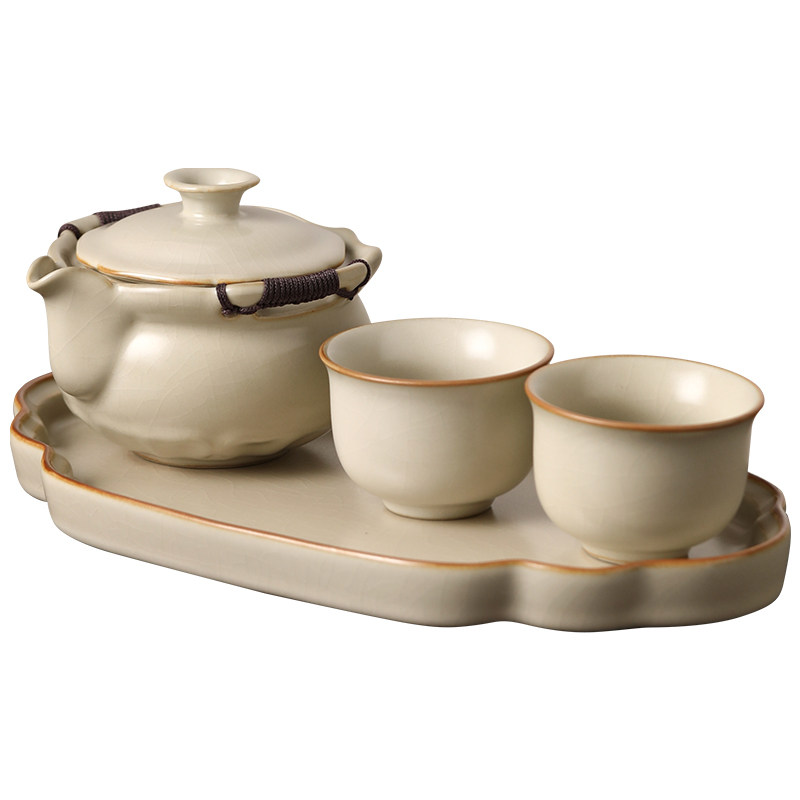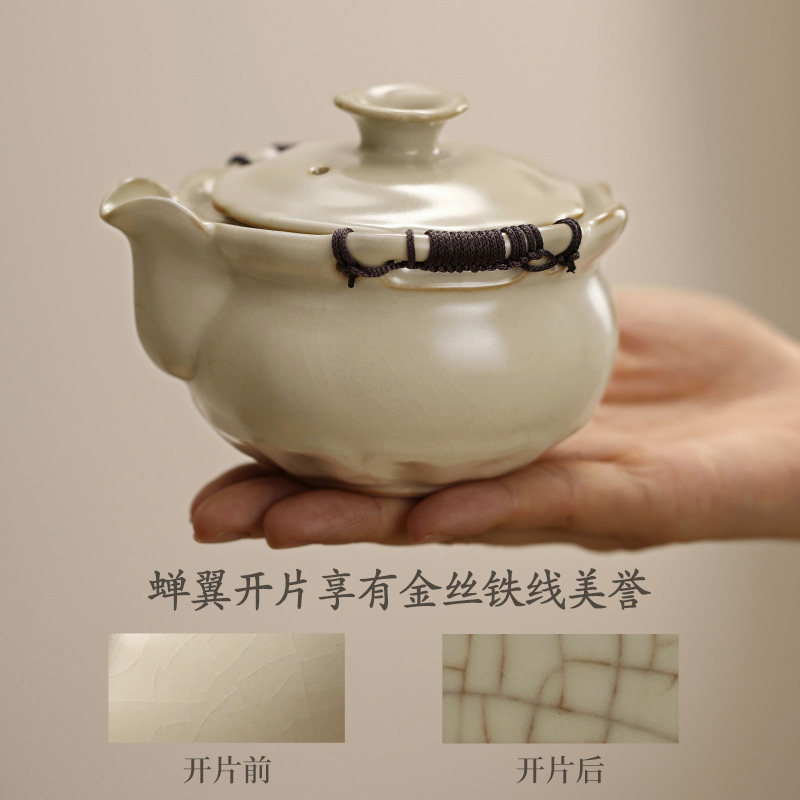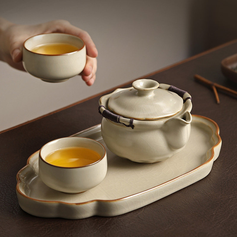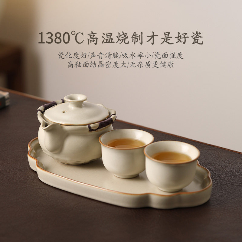 📚 女士一壶一杯汝窑茶具套装2023新款手抓壶简易喝茶精致小套装茶盘