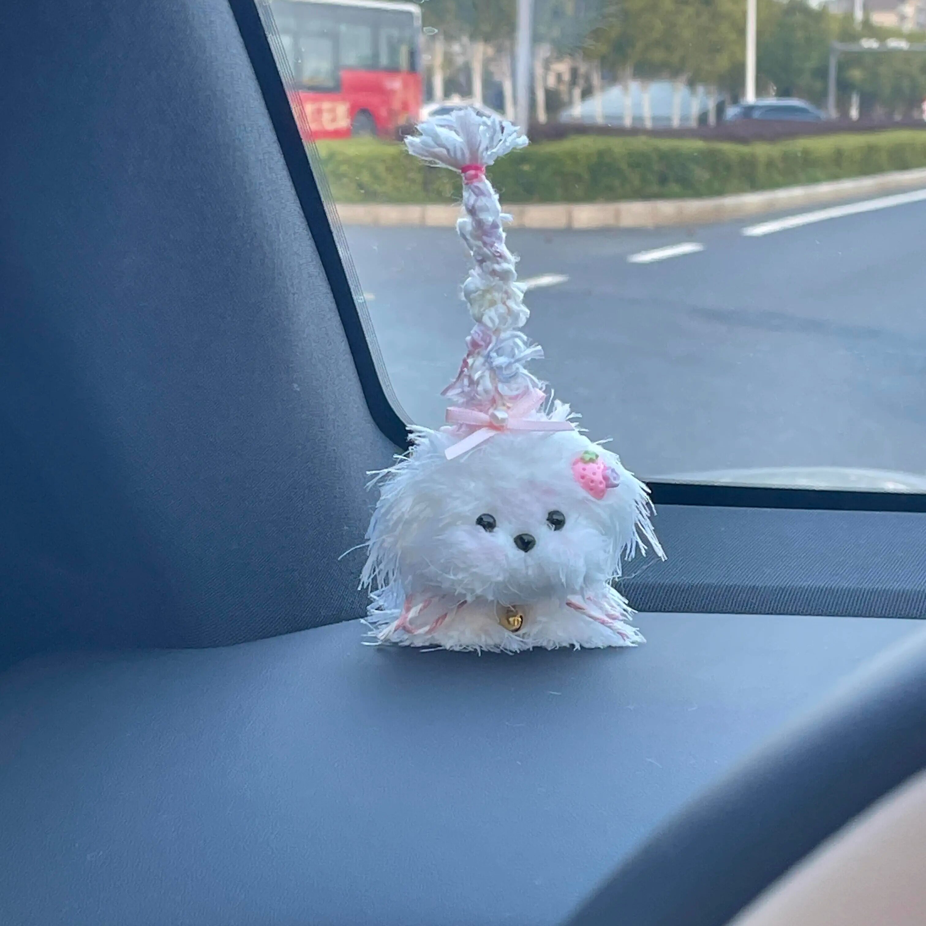 📚 【可爱车搭子~】长辫小狗车载摆件中控台有趣的汽车装饰品手作
