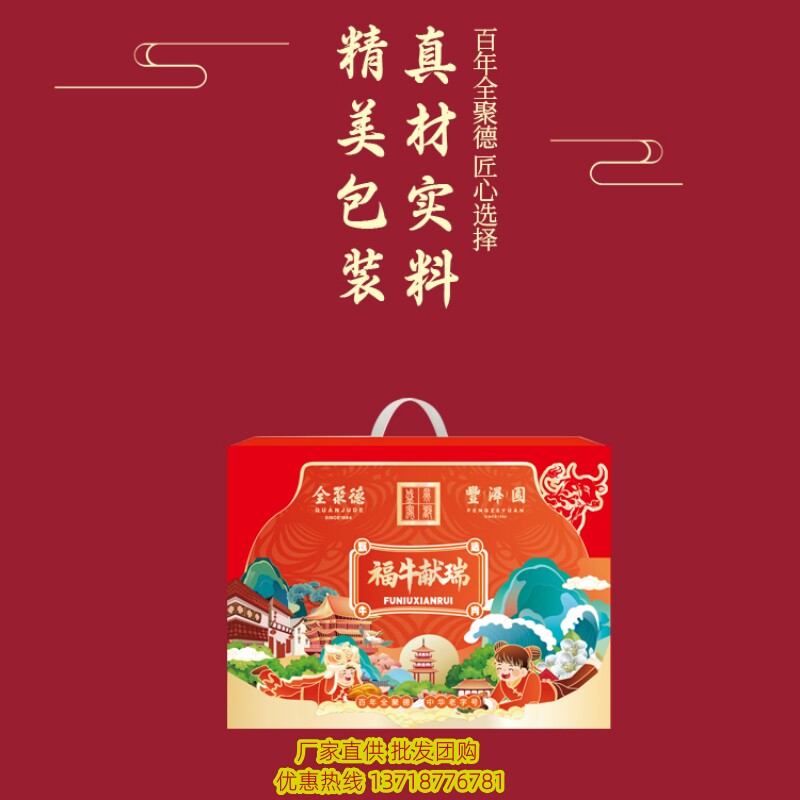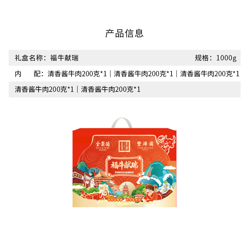 📚 全聚德丰泽园熟食礼盒福牛献瑞清香酱牛肉200g*5袋装年货礼品送礼