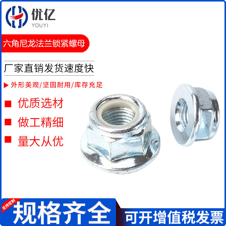 📚 GB6183六角尼龙法兰面锁紧螺母 非金属嵌件法兰自锁 金属法兰防松