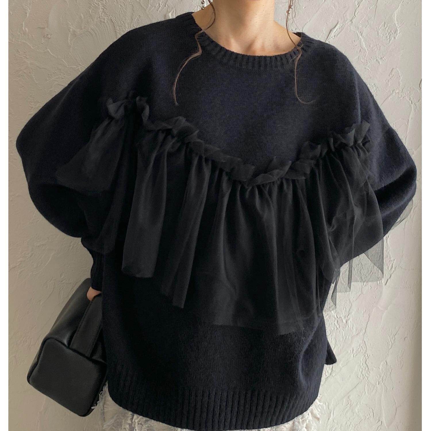 📚 跨境外单日韩系2024秋冬新款网纱拼接拼接假两件针织毛衣白领上衣