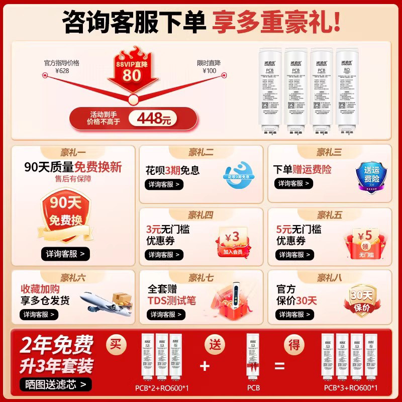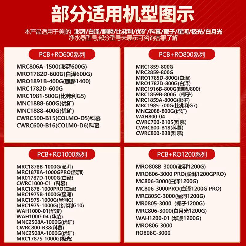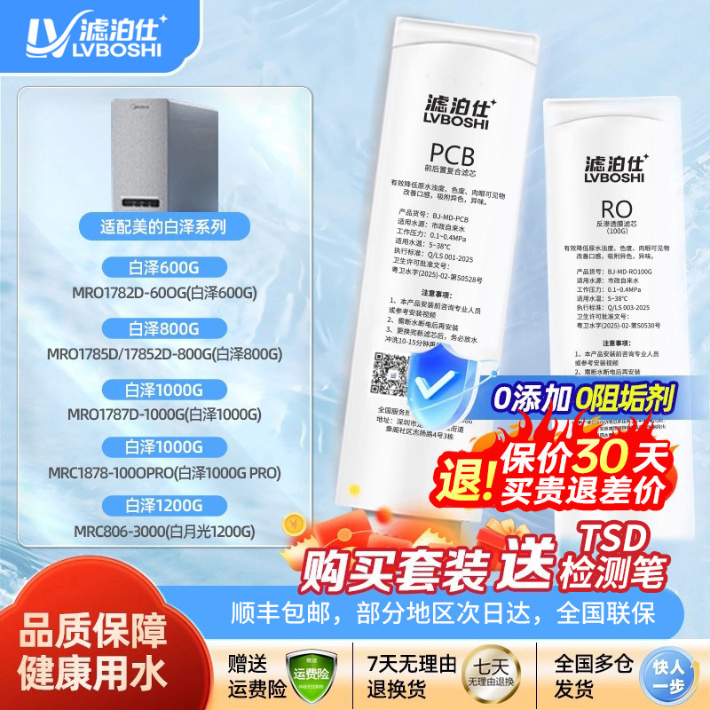 📚 滤泊仕通用美的白泽滤芯MR01787D-1000G/1782-800G/MRC1878/806