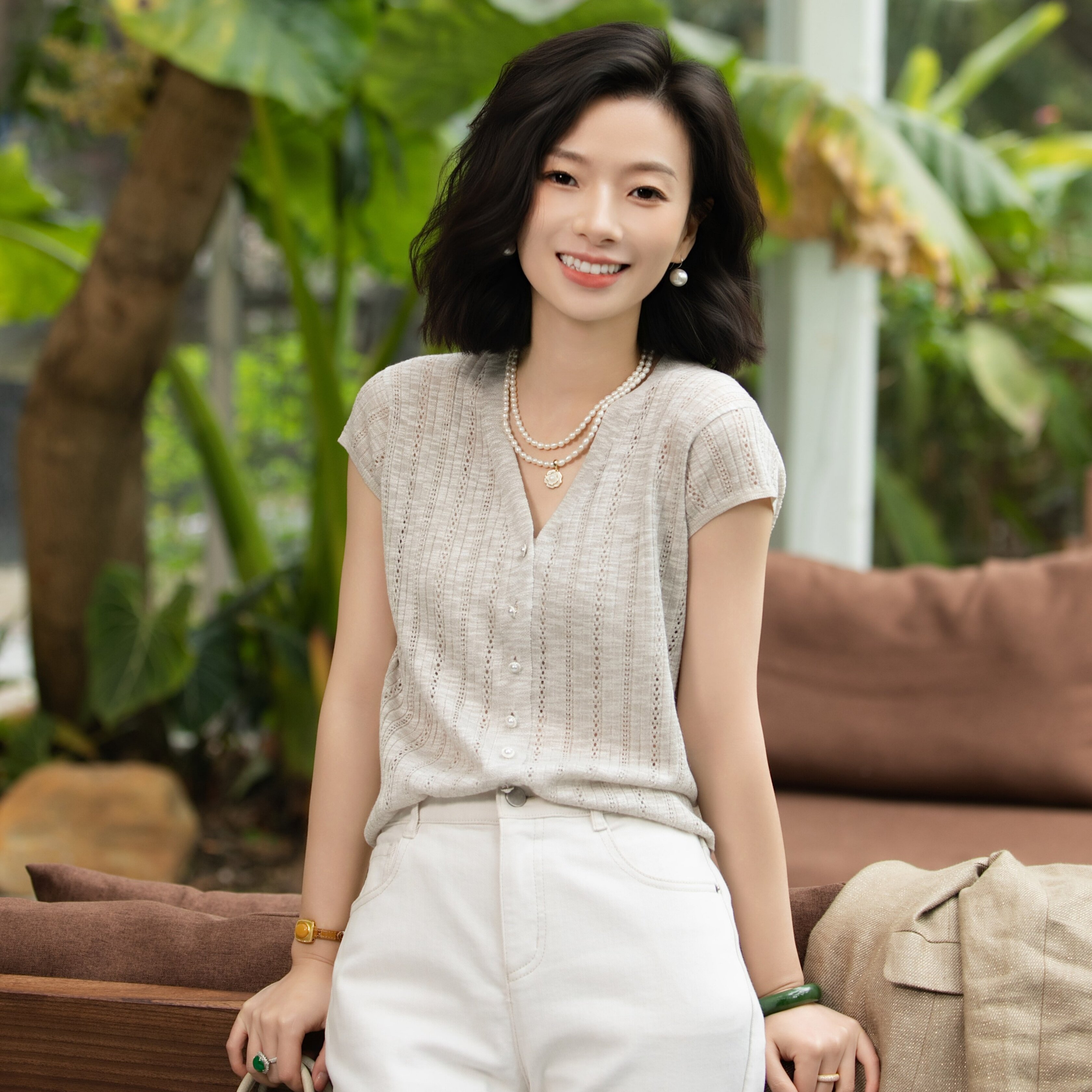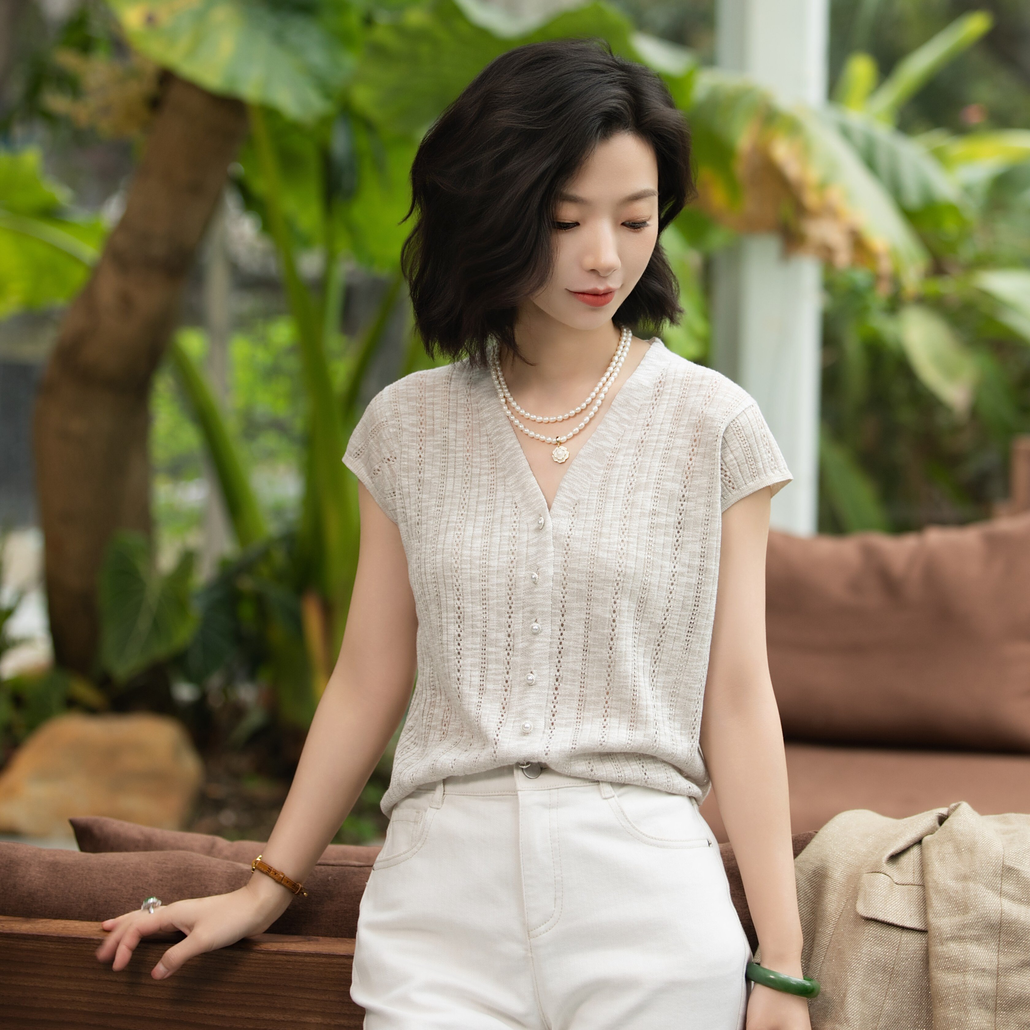 📚 西子/【椰奶拿铁】竹节麻春夏凉感百搭浅咖针织马甲背心/MSYH0143