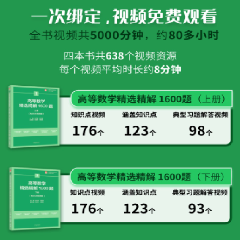📚 高等数学精选精解1600题上下册 知识点视频版 张天德 主编 张天德 孙钦福 副主编 张歆秋 戎晓霞