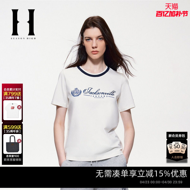 📚 SEASON HIGH春季NFL联名胸前杰克逊维尔美洲虎队刺绣T恤女装