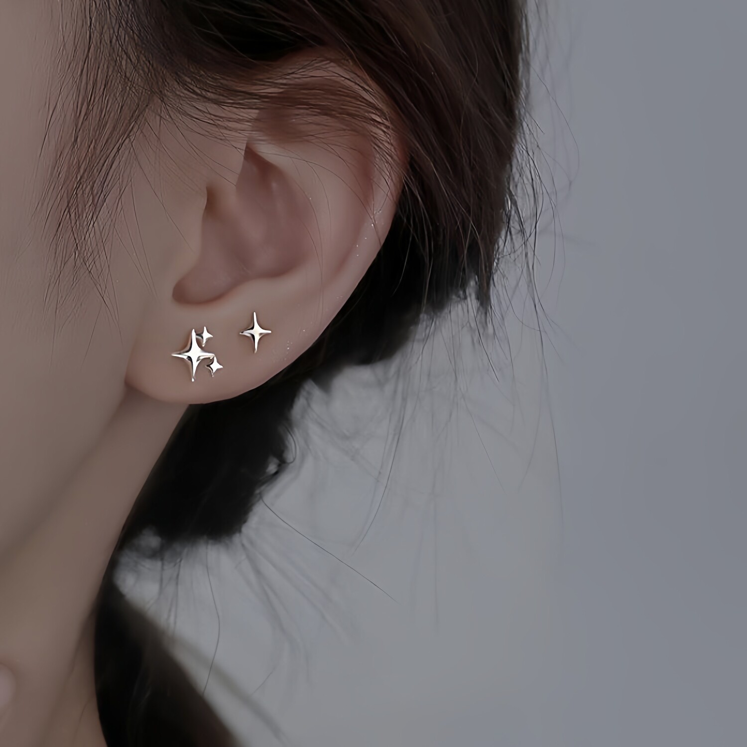 📚 养耳洞925银小耳钉女套装组合甜美风小众设计感耳骨钉防过敏耳饰