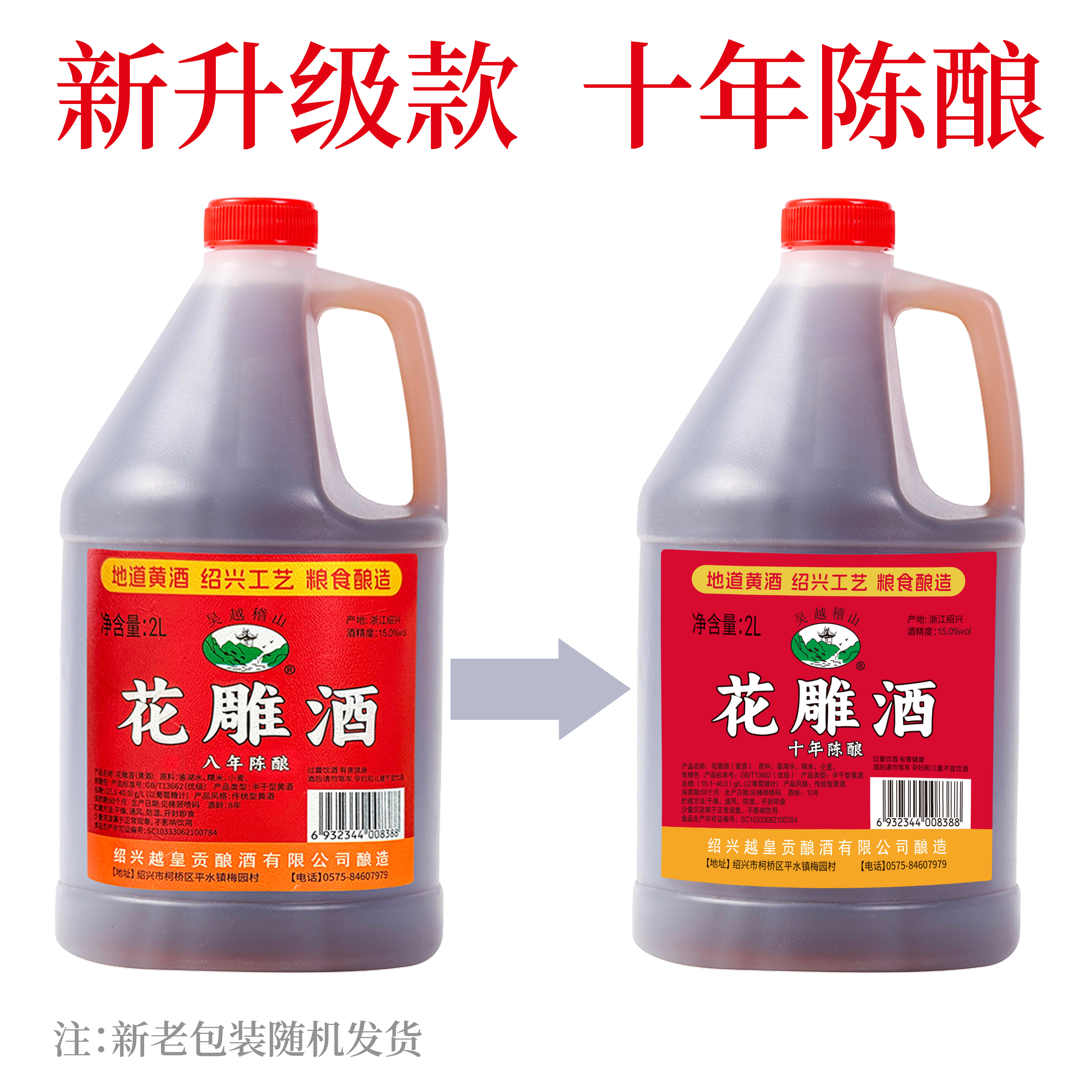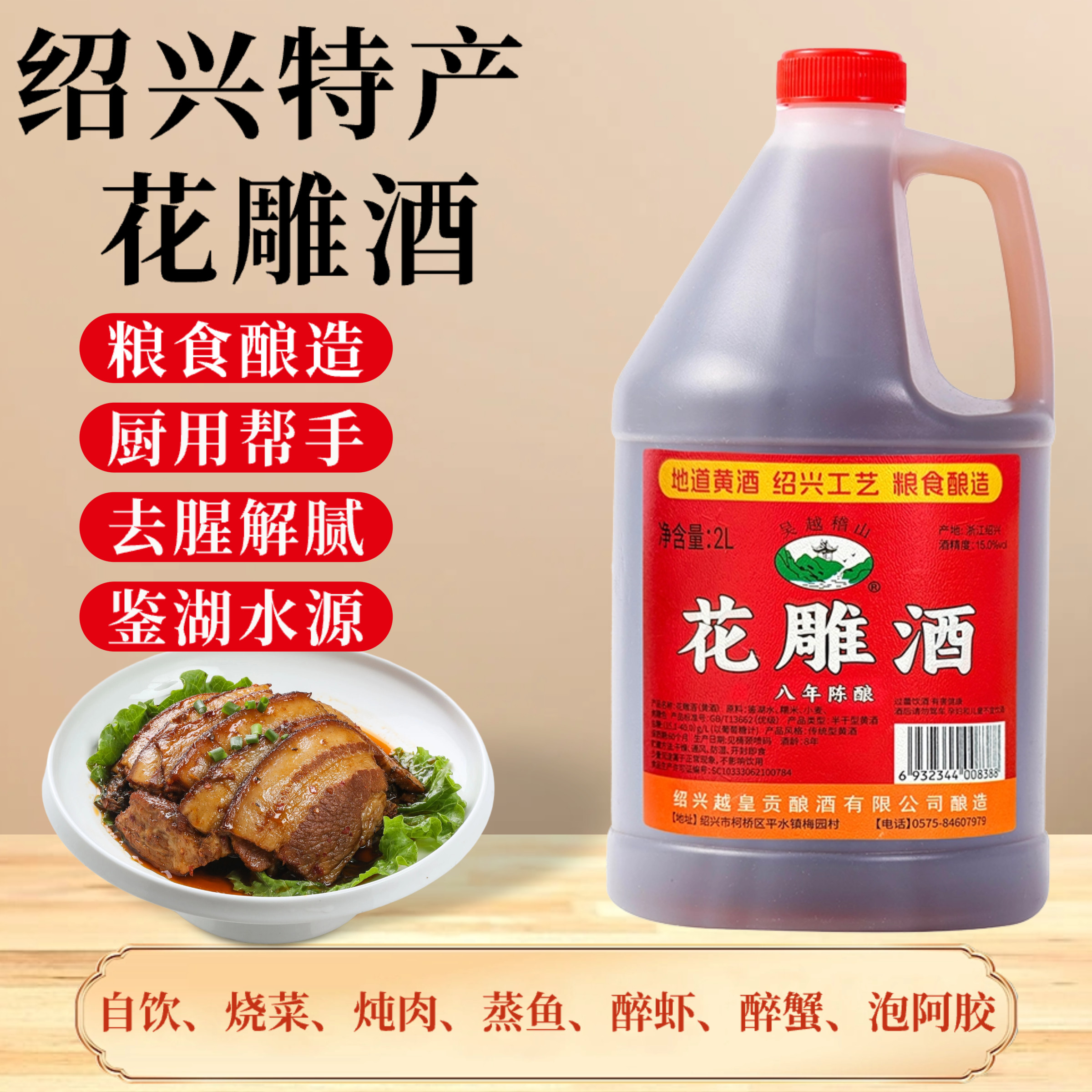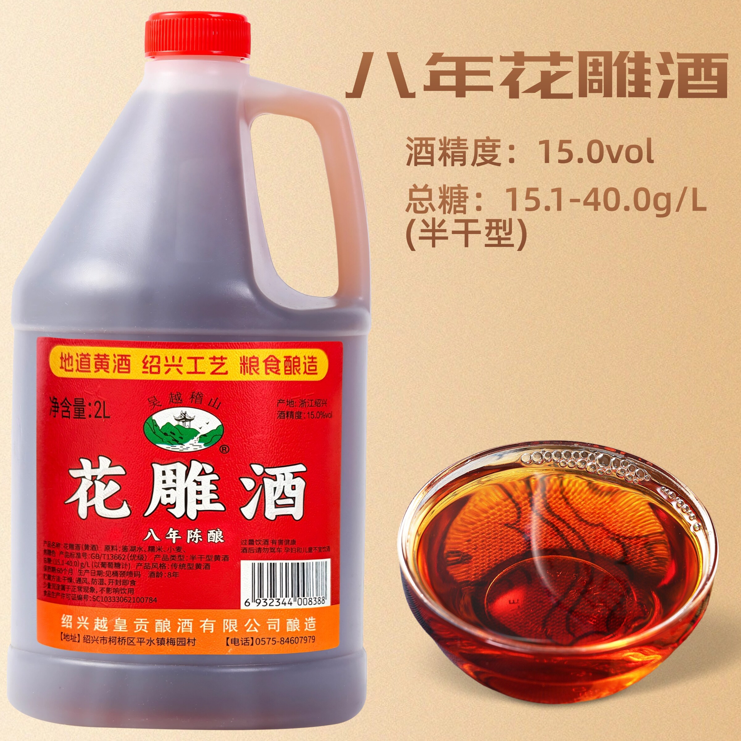 📚 优级花雕酒绍兴产黄酒吴越稽山糯米花雕2L老酒自饮烧菜15度