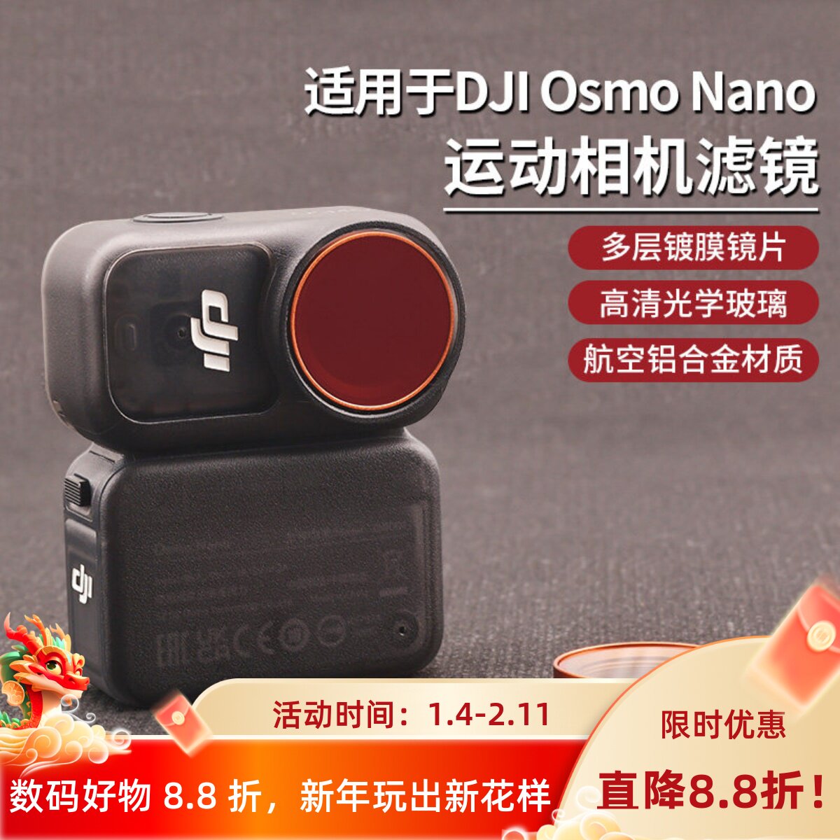 📚 适用于大疆osmo nano滤镜高清光学滤镜CPL偏振ND减光运动相机配件