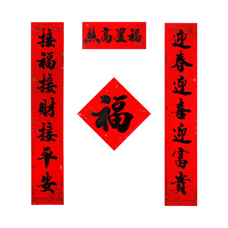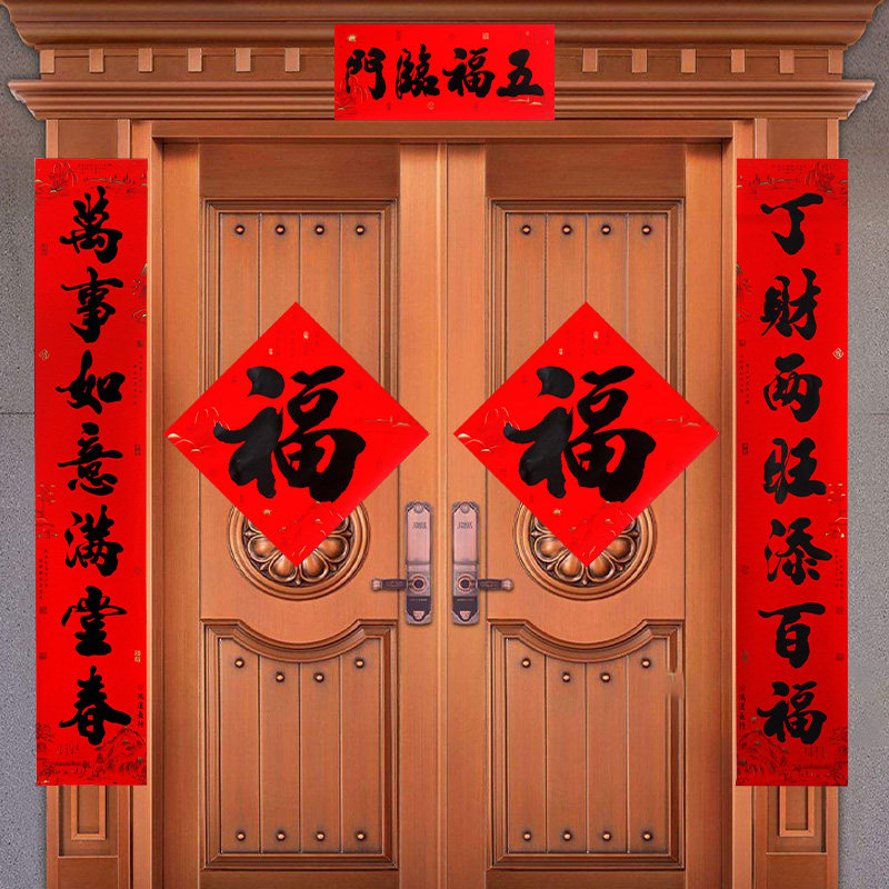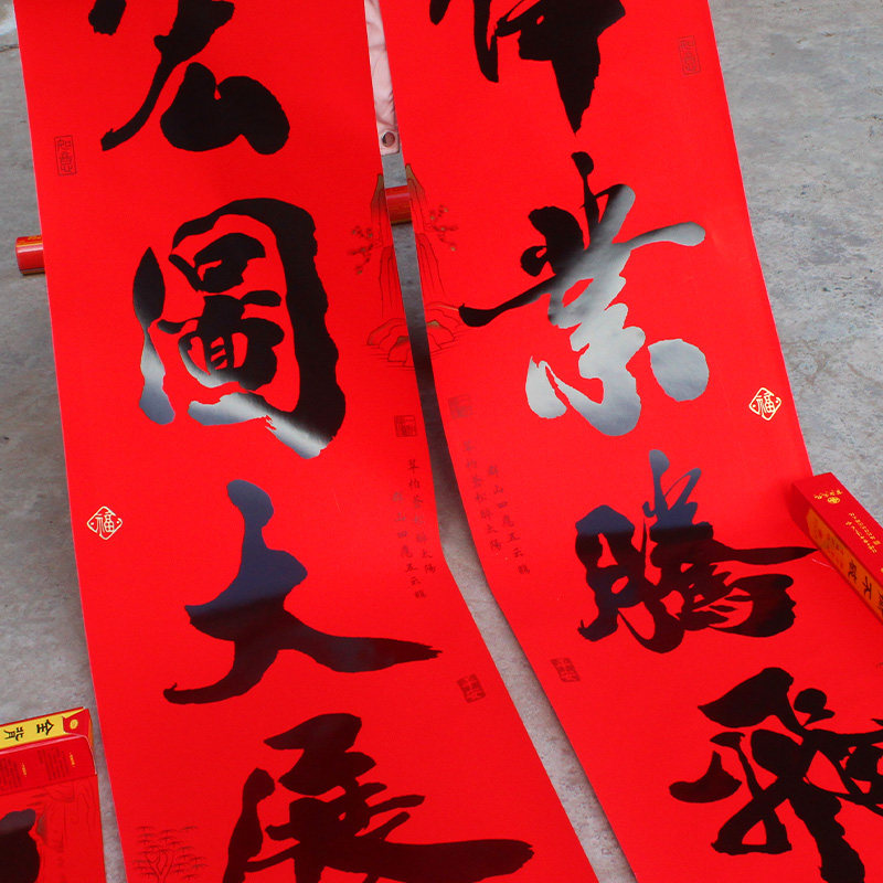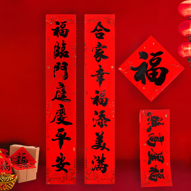 📚 高档书法黑字春联鸿运长行描金2026新款农村大门双开门特大号对联