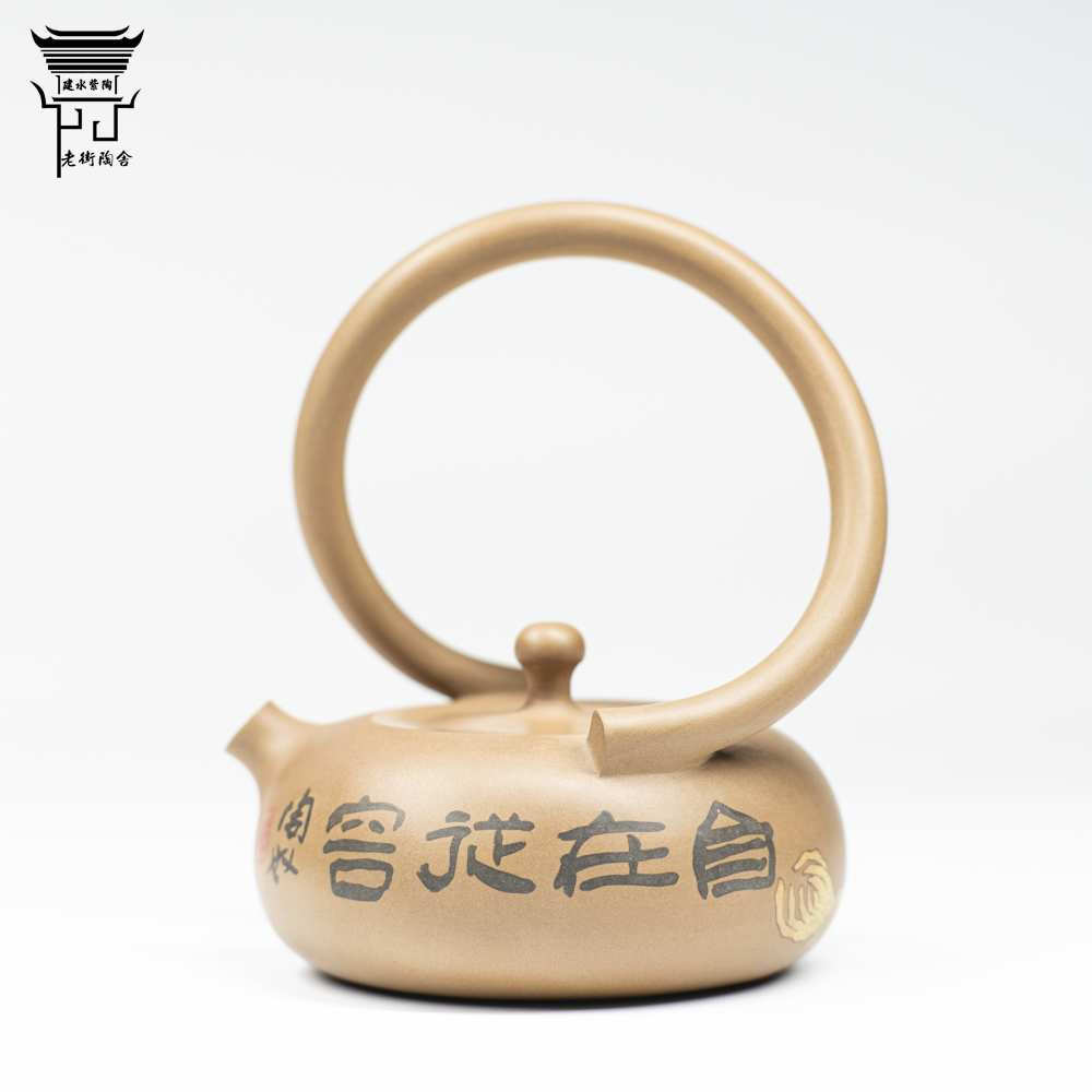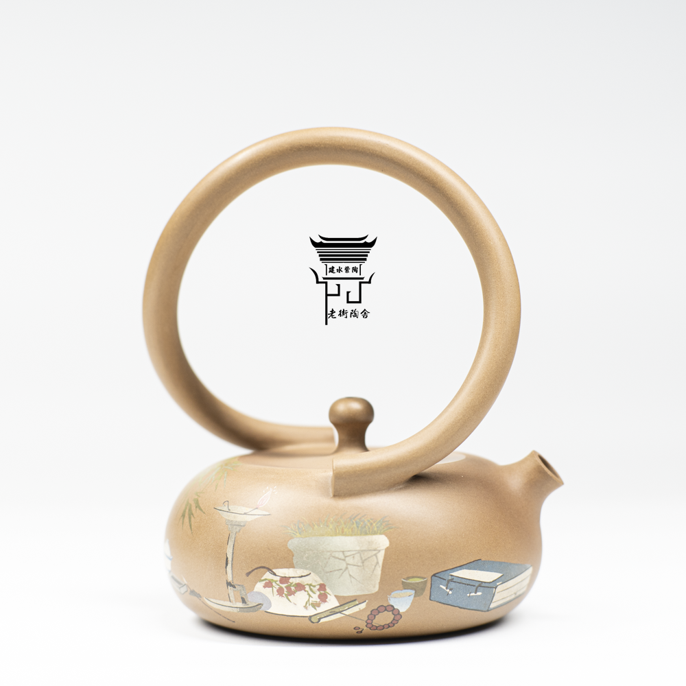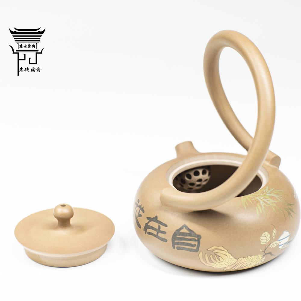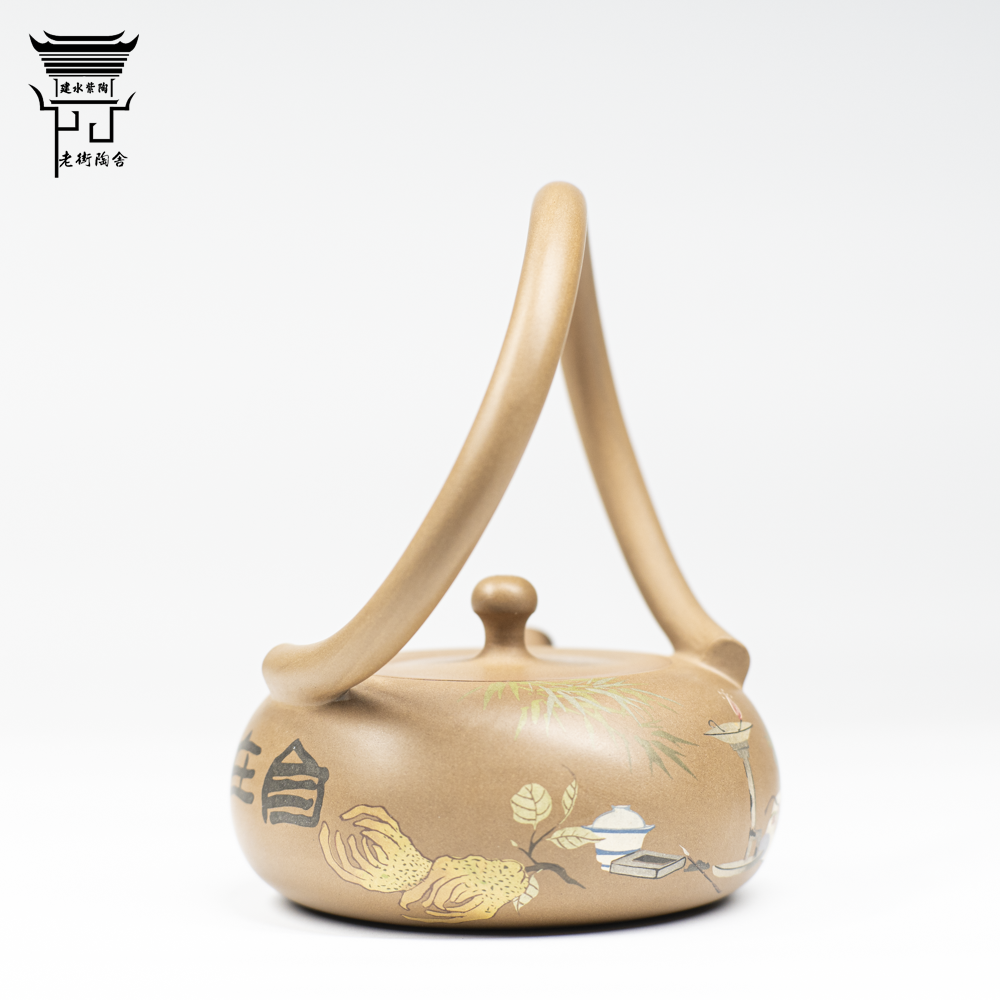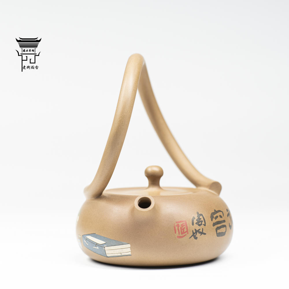 📚 建水紫陶仿古泥提梁壶阴刻阳填清供图普洱泡茶具张海飞陶奴李雨蔓