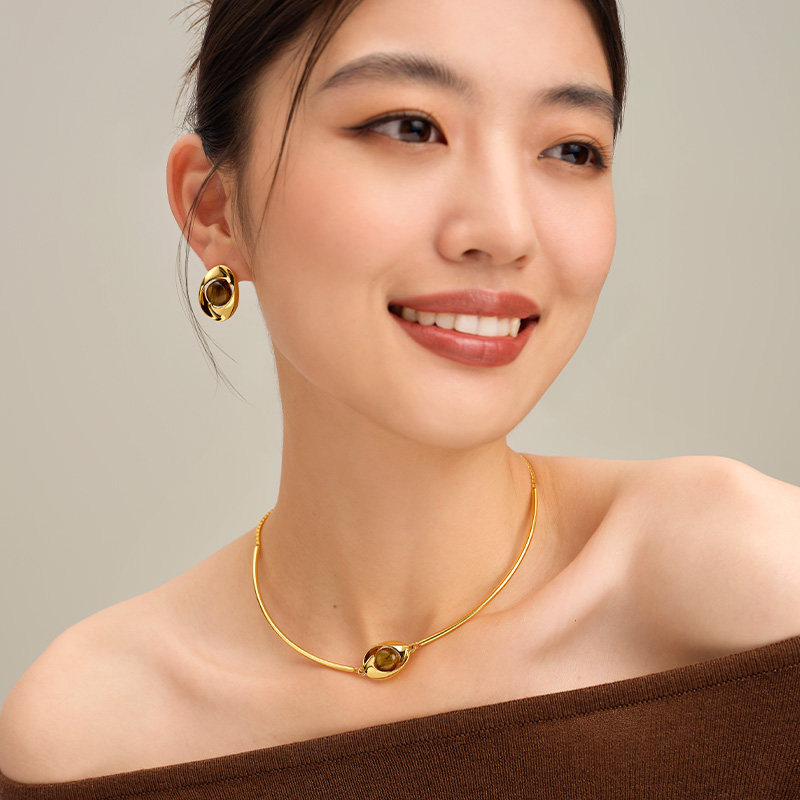 📚 明星同款OYBIYABI欧比雅比木星 星球漩涡项圈虎眼石耳钉生日礼物