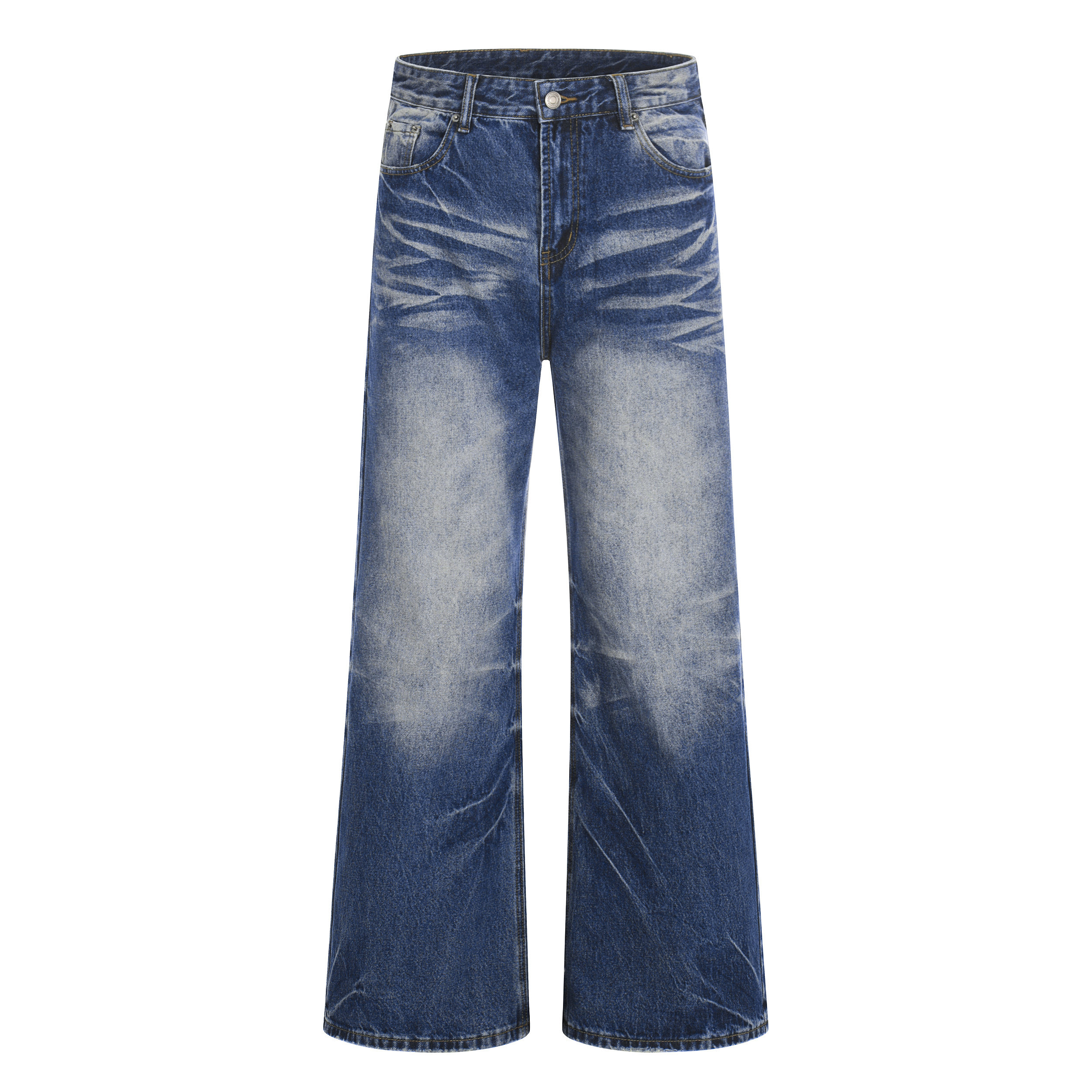 📚 欧美高工艺水洗646宽松直筒版型牛仔裤立体猫须cleanfit长裤子男