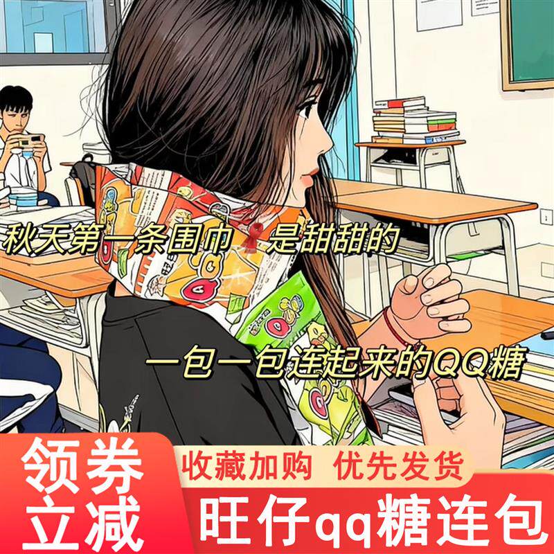 📚 秋天第一条围巾旺仔QQ糖围巾已粘好送闺蜜女友男友旺仔QQ糖长条款
