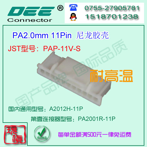 📚 A2012H-11P 白色尼龙V9耐高温胶壳&替代JST PAP-11V-S