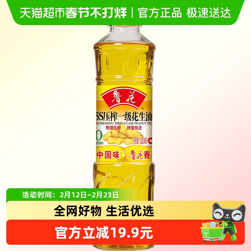 📚 鲁花5S压榨一级花生油500ml特香纯正健康食用油炒菜厨房家用家庭