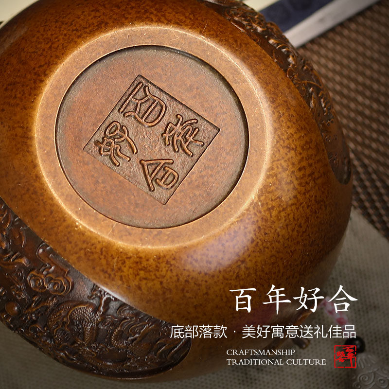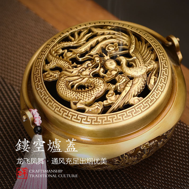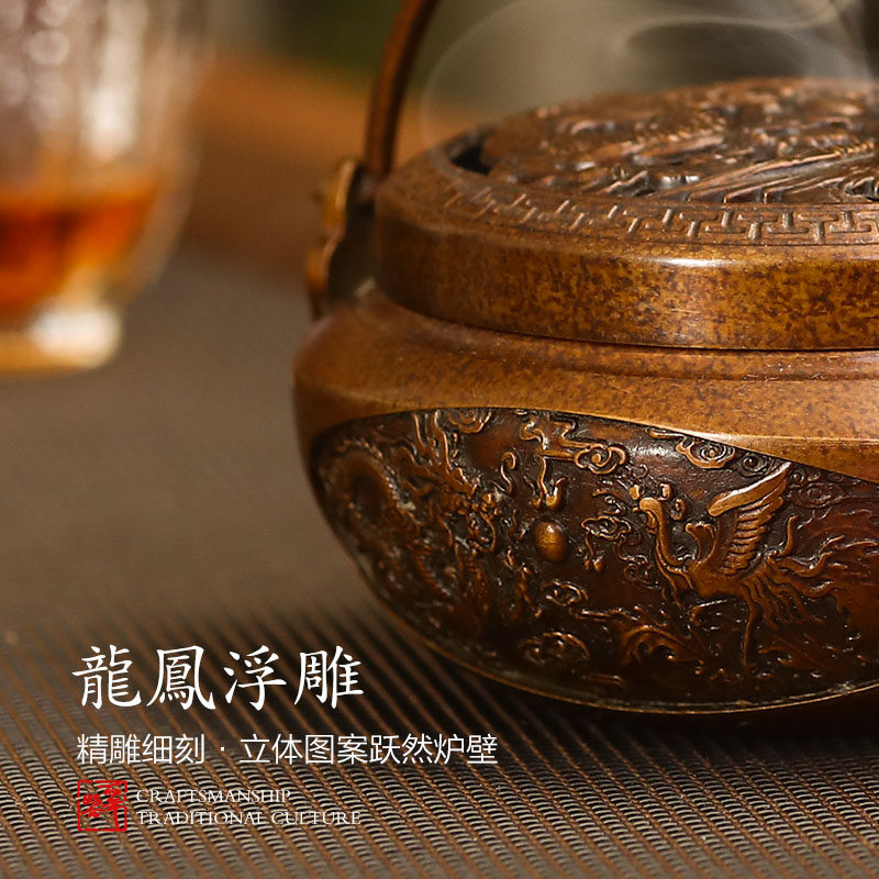 📚 龙凤呈祥纯黄铜暖手炉取暖家用室内婚庆用品铜火铳结婚陪嫁旺夫炉