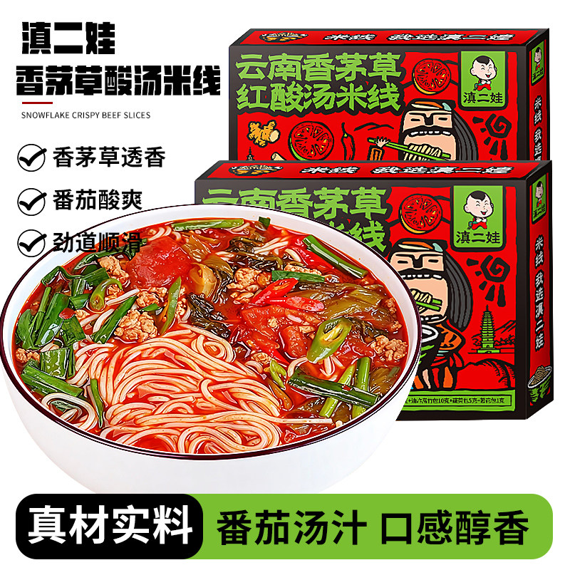 📚 滇二娃云南香茅草红酸汤米线免煮过桥小锅米线冲泡方便酸辣米粉丝