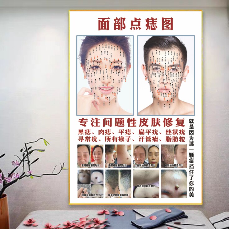 📚 痣相图点痣宣传图美容院祛痣海报广告图面部图男女面痣图取痣图