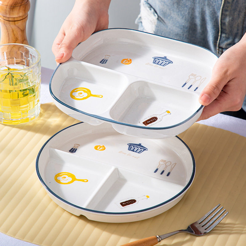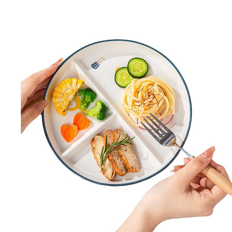 📚 分餐盘高级感家用三格定量大人减肥减脂专用陶瓷儿童宝宝分格餐盘