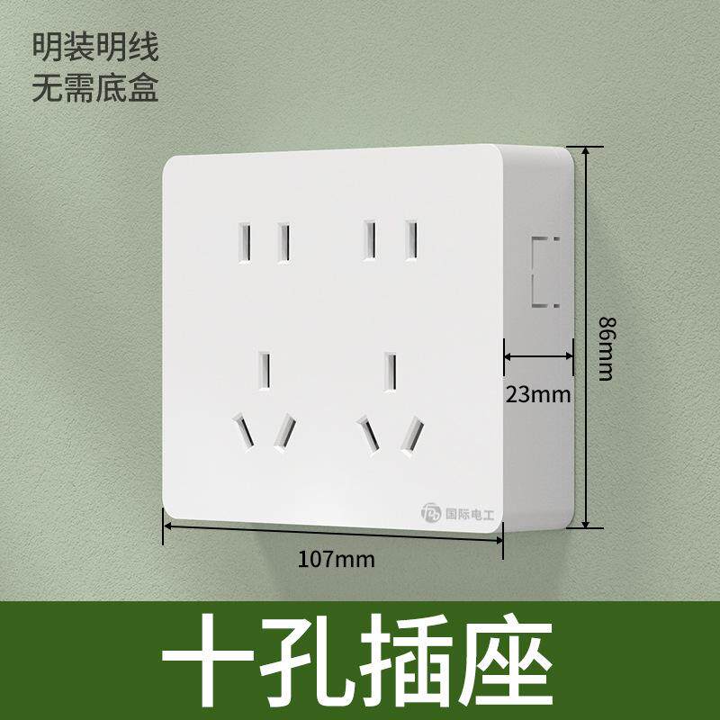 📚 明装五孔插座带开关免拔插大功率明线连体开关插座明盒联排插座