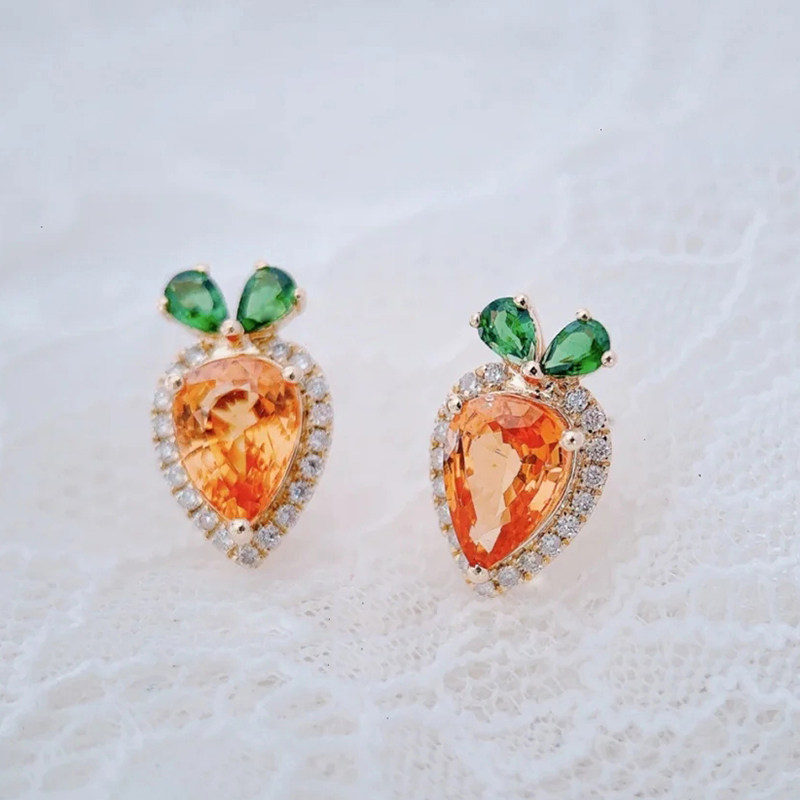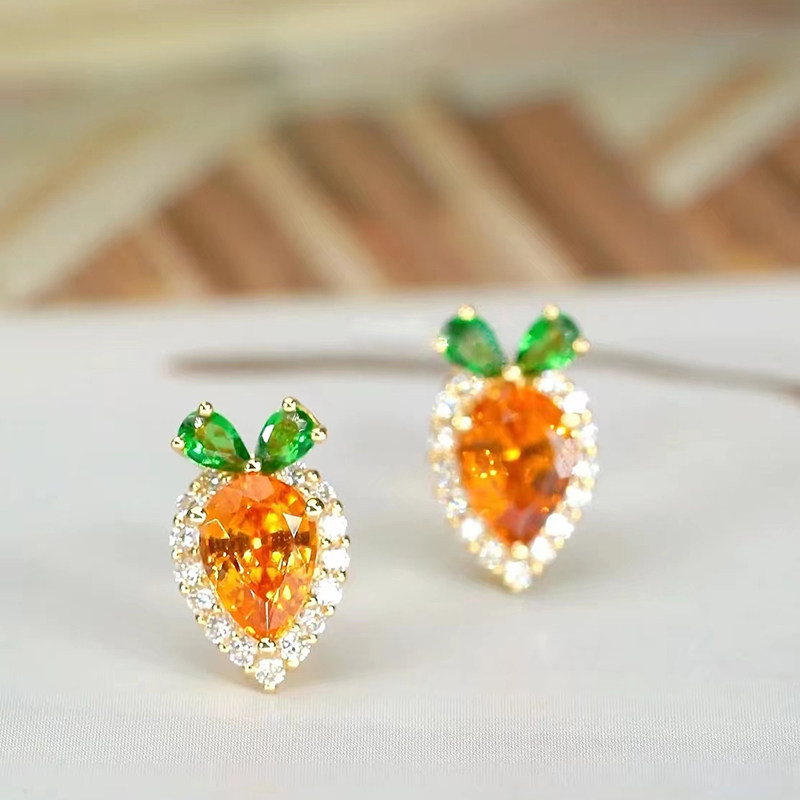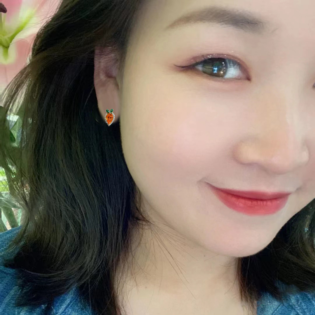 📚 童趣|小白兔的胡萝卜芬达石耳钉戒指套装可爱软萌果蔬S925银首饰
