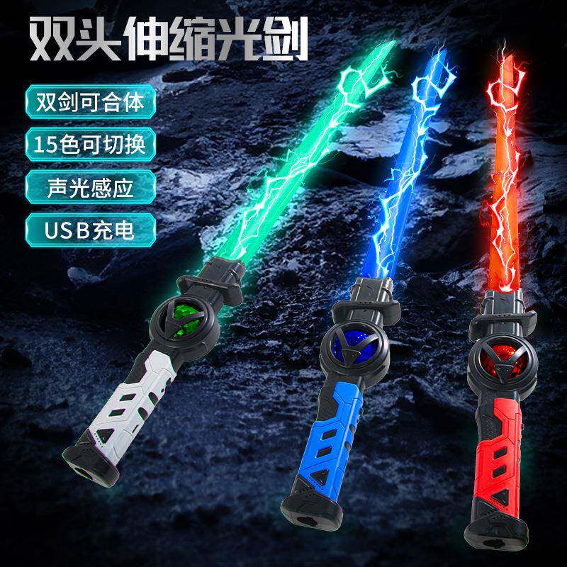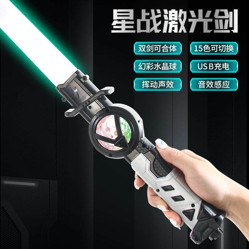 📚 双剑合并伸缩变形激光剑荧光棒星际大战发光宝剑二合一玩具闪光棒
