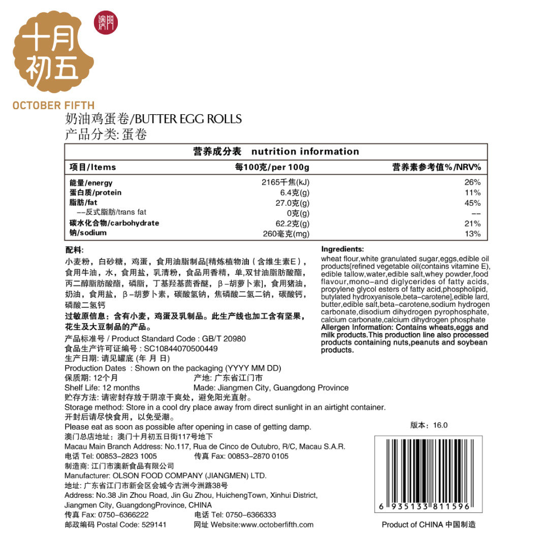 📚 十月初五奶油鸡蛋卷礼盒装澳门风味糕点蛋卷饼干点心礼品团购送礼
