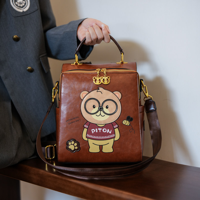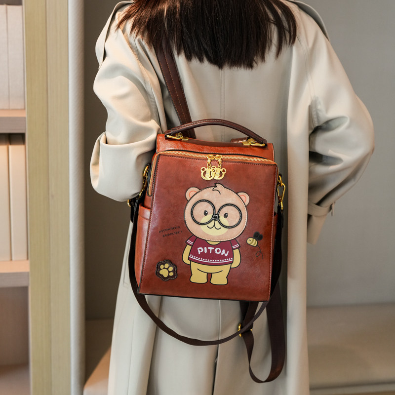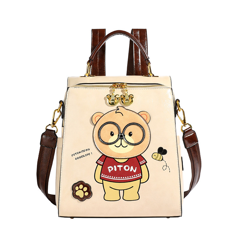 📚 北包包2025新款小熊软皮双肩包多用单肩包休闲百搭旅行大容量书包