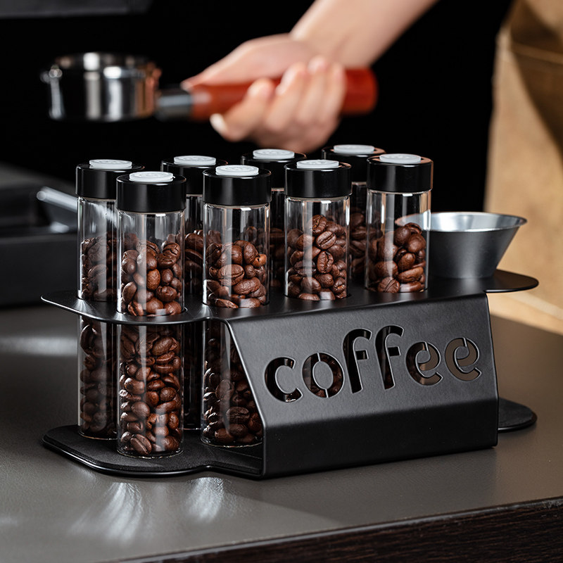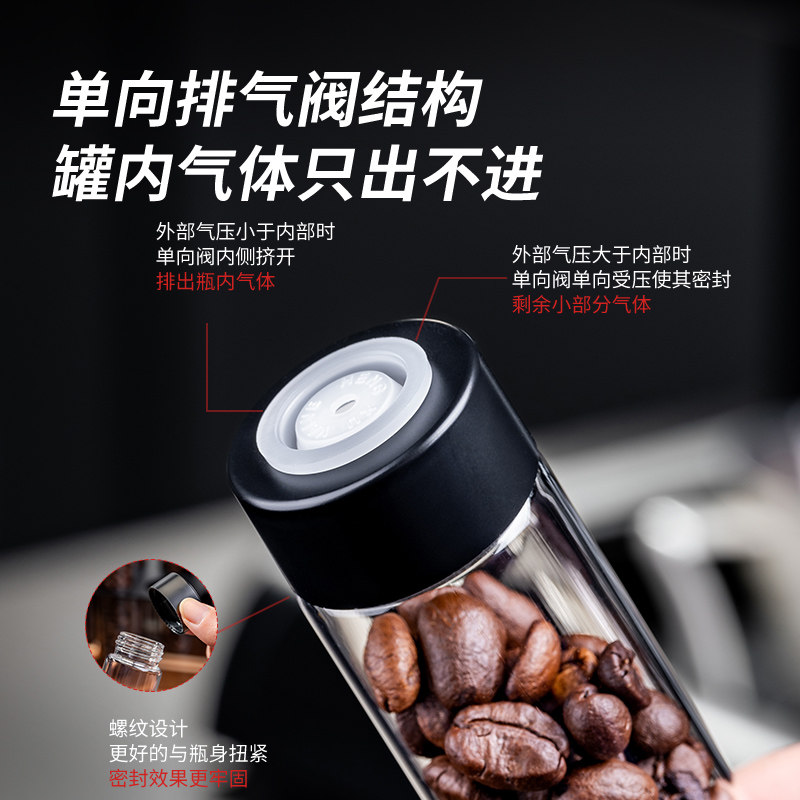 📚 咖啡豆分装瓶展示架单向排气阀试管密封罐收纳专用透明玻璃保存罐
