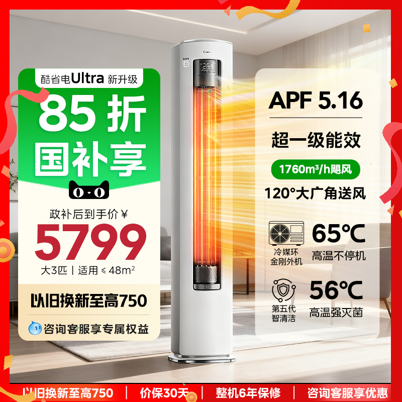 📚 美的空调酷省电3匹Ultra新一级能效省电节能空调立式柜机变频冷暖