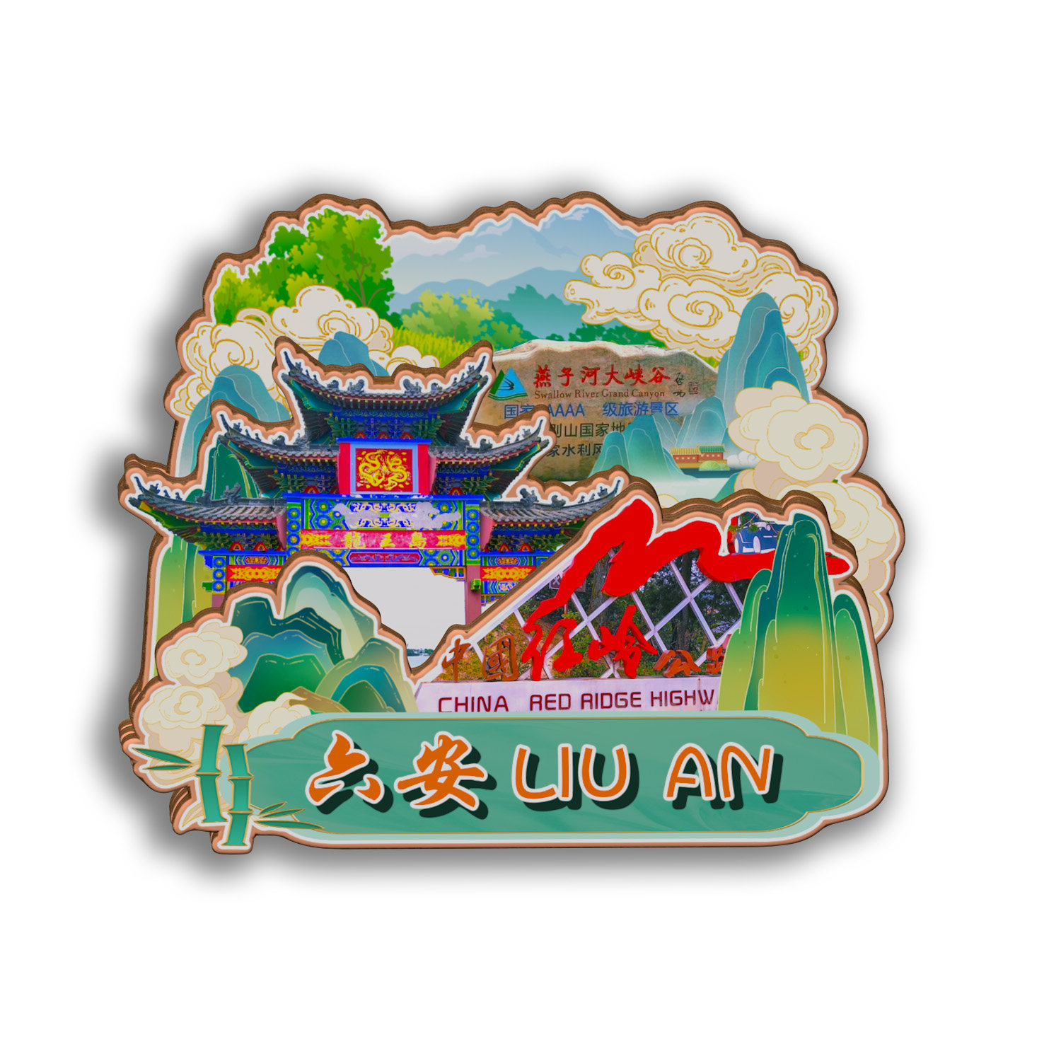 📚 安徽六安天堂寨大别山燕子河万佛湖皖西大裂谷木质冰箱贴旅游纪念
