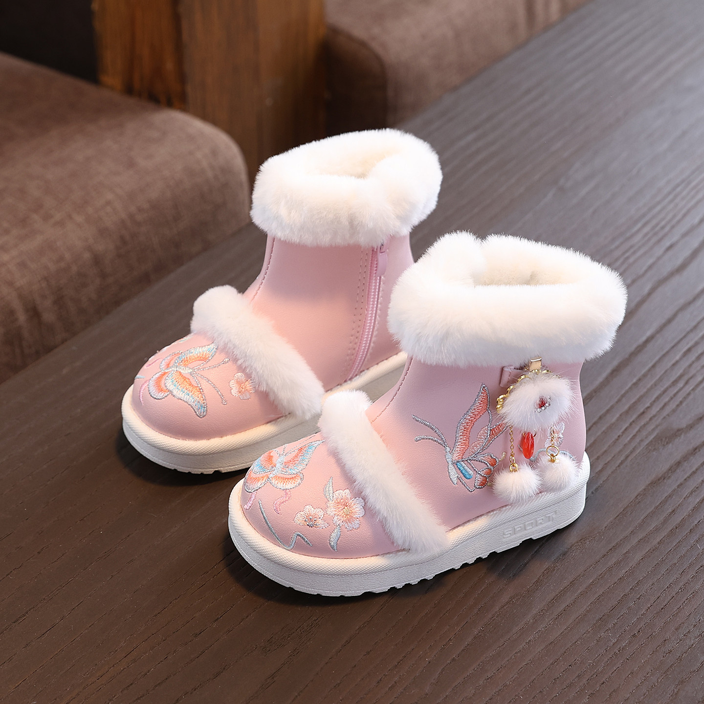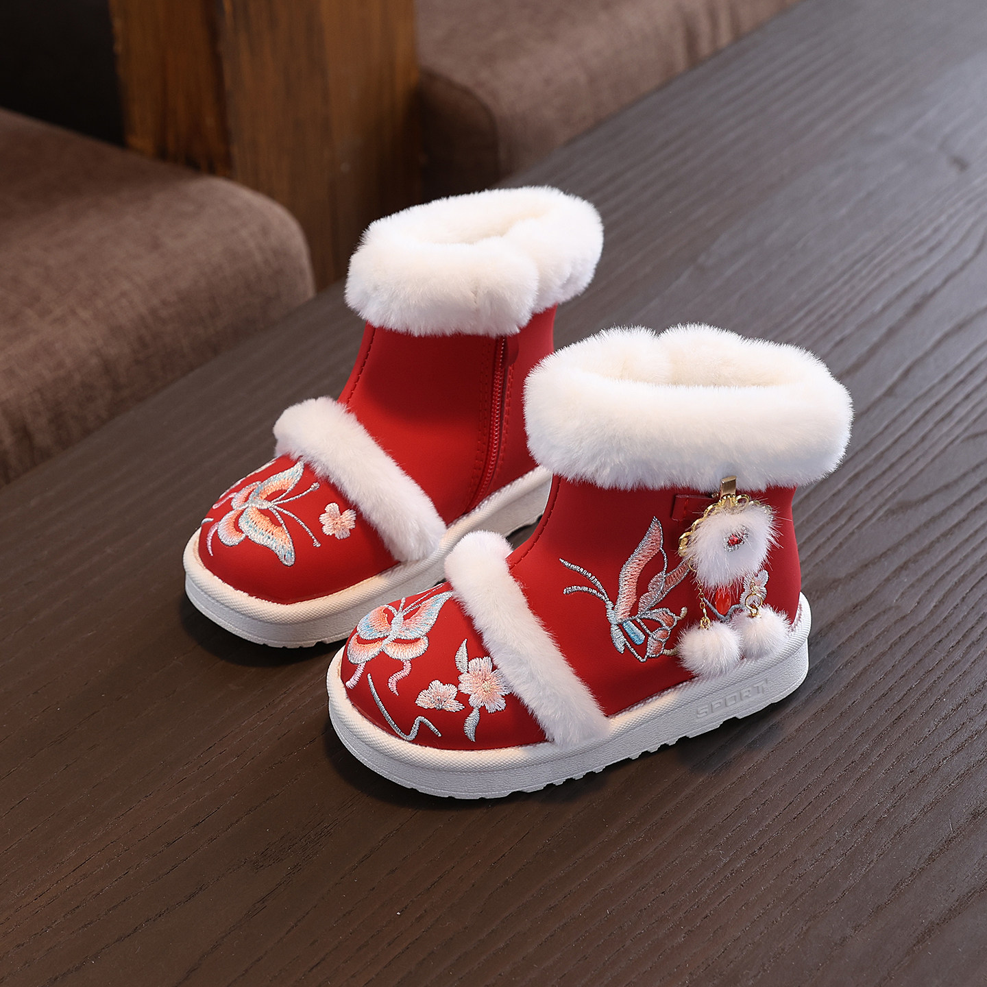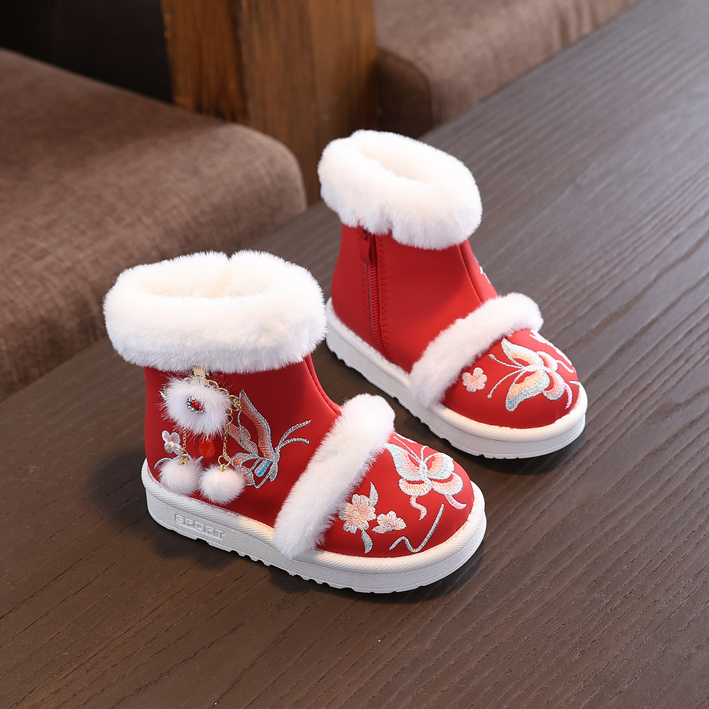📚 拜年2026冬季女童鞋古风加绒汉服鞋儿童棉鞋雪地靴棉靴国风红色