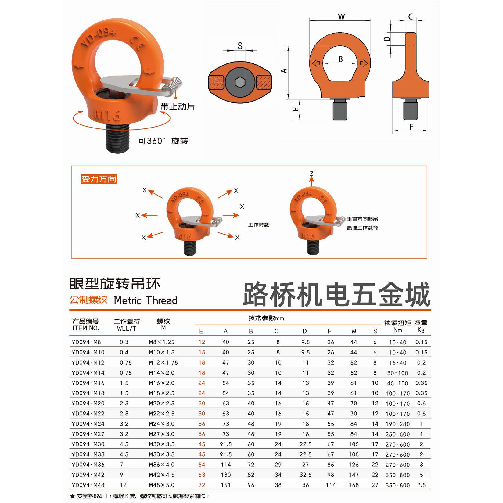 📚 义云G80眼型旋转吊环 公制螺纹模具万向吊环吊点六角带螺头止动片