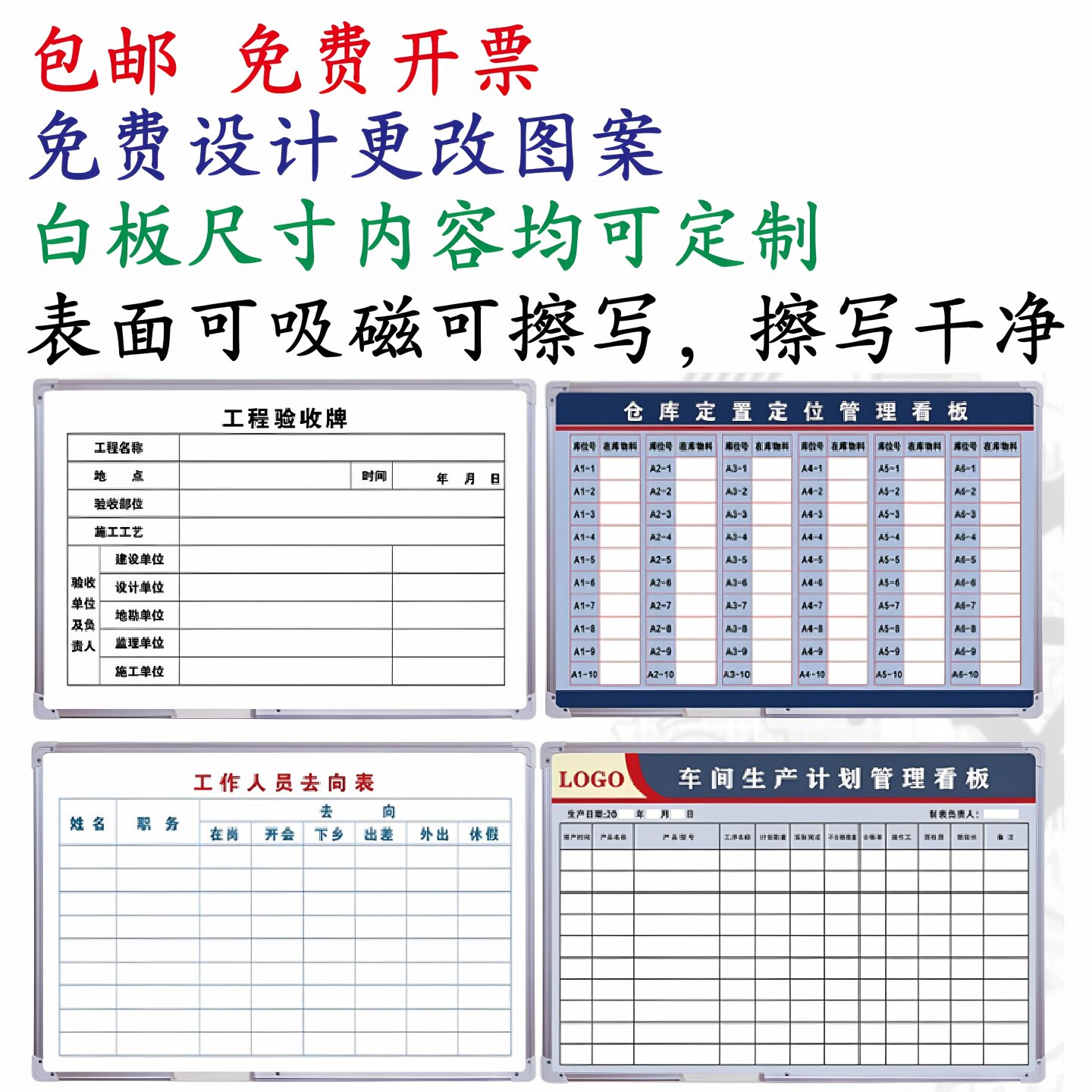 📚 工厂车间生产管理计划看板边框硬白板定制板面可擦写吸磁免费设计