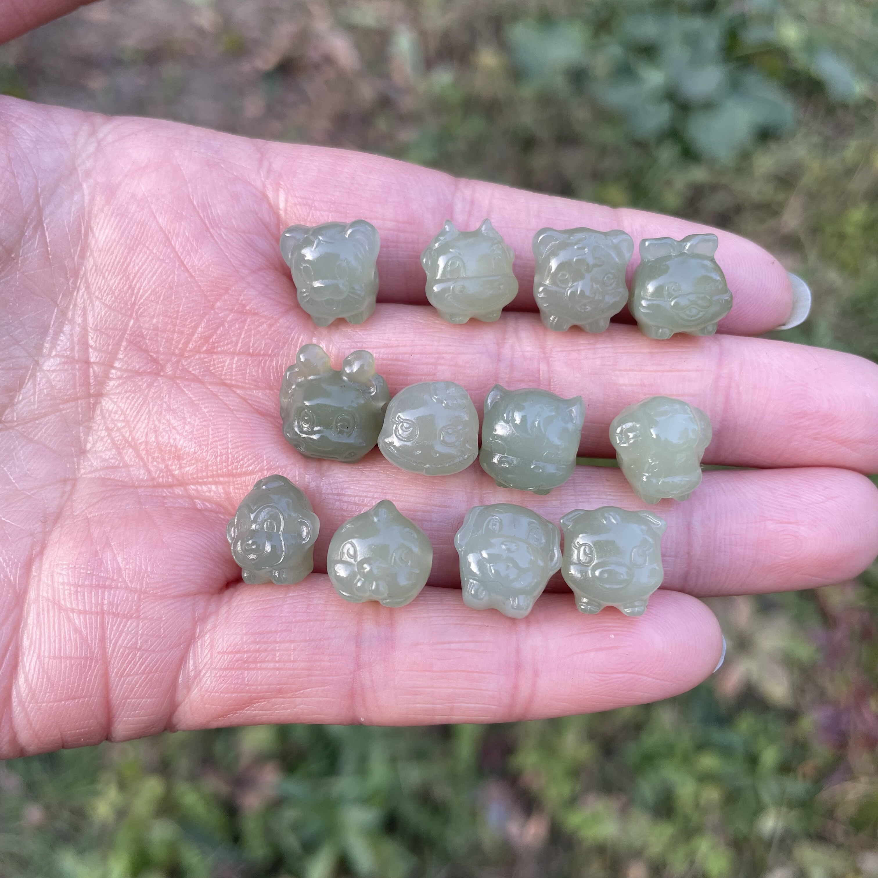 📚 天然晴水色和田玉十二生肖本命年散珠蛇马羊三合六合卡通属相配珠