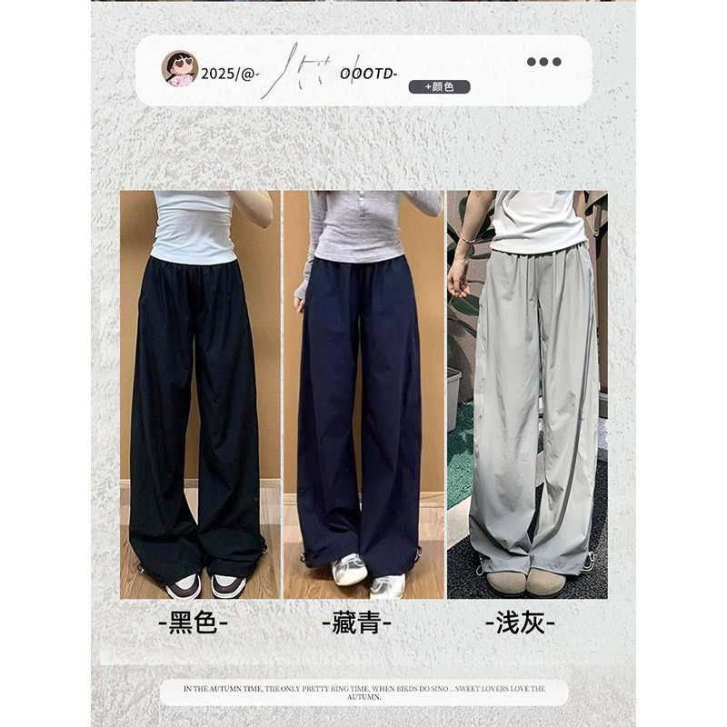 📚 美式速干运动工装裤女2026春夏新款高腰垂感显瘦休闲阔腿裤小个子