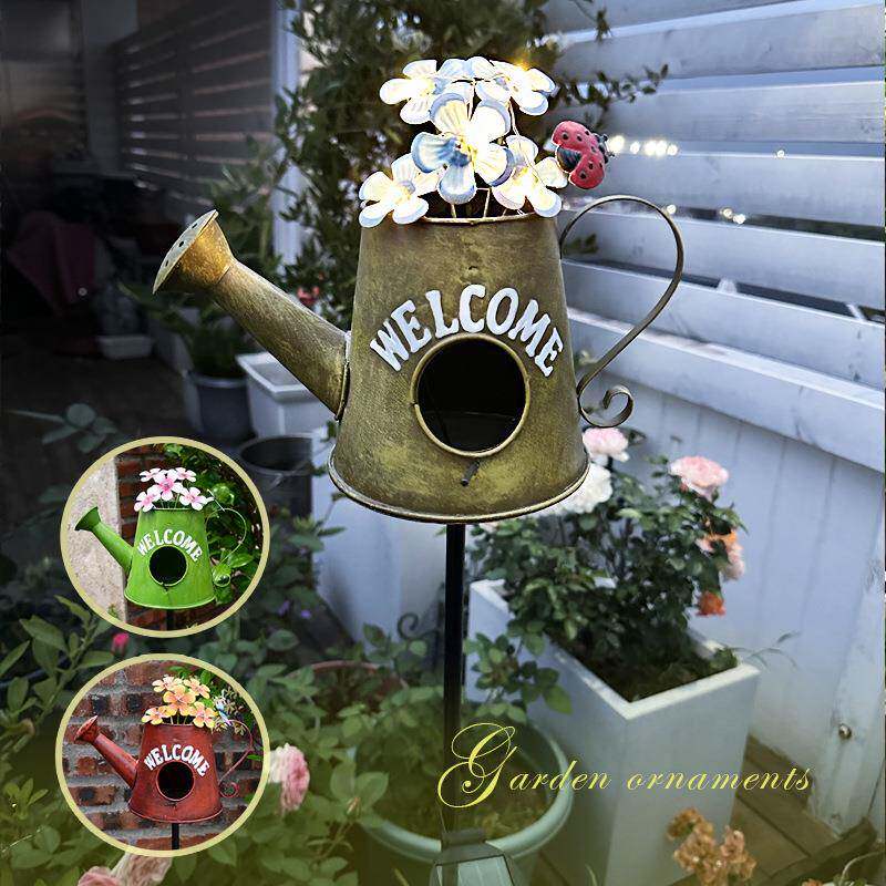 📚 能欧铁式水壶鸟窝摆花插植物爬藤支架太阳灯艺庭院阳台网NZP红件
