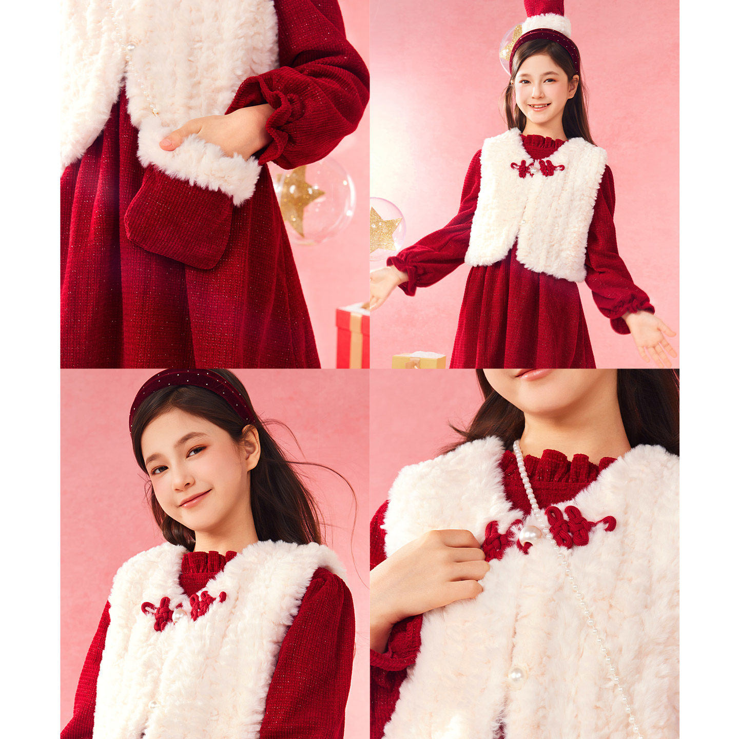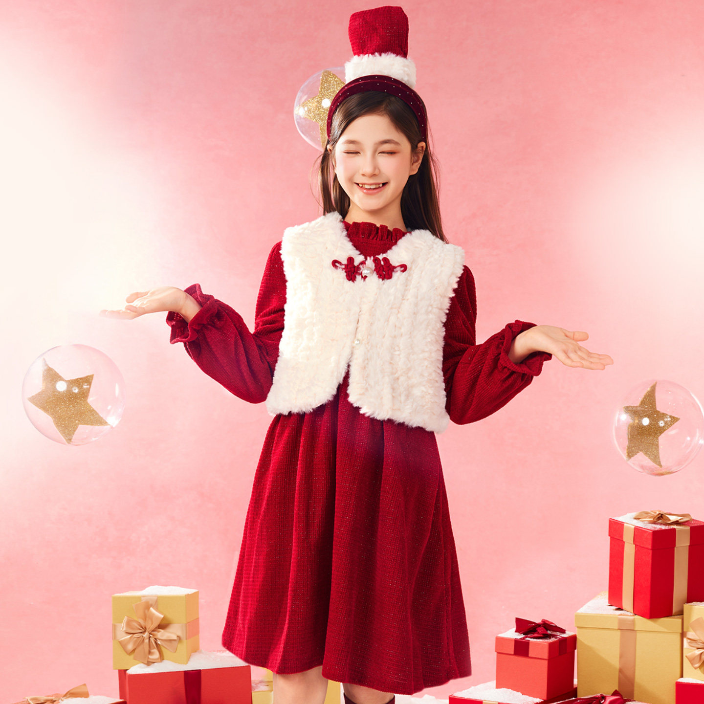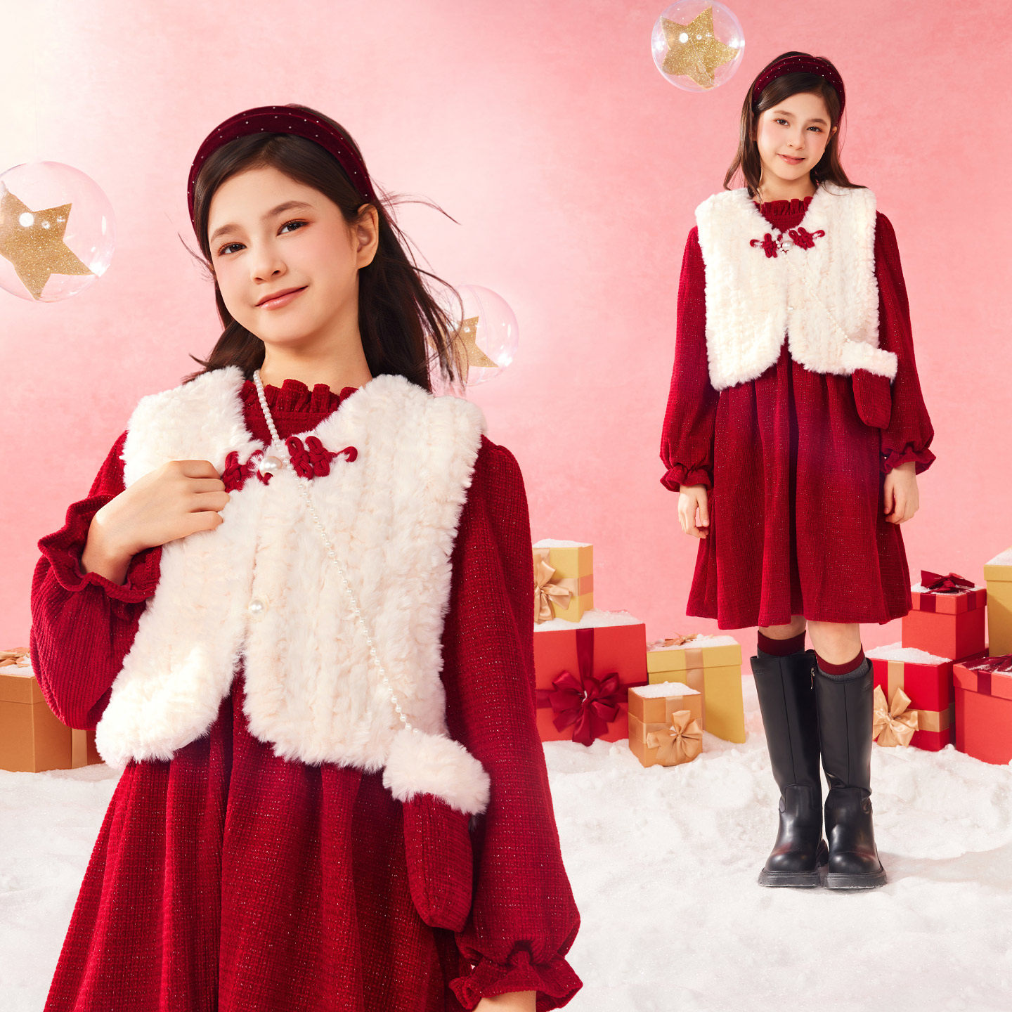 📚 小虎帕蒂新中式连衣裙套装冬季女童公主裙拜年服甜美暖和洋气套装