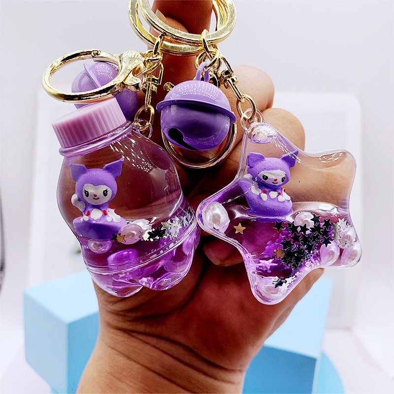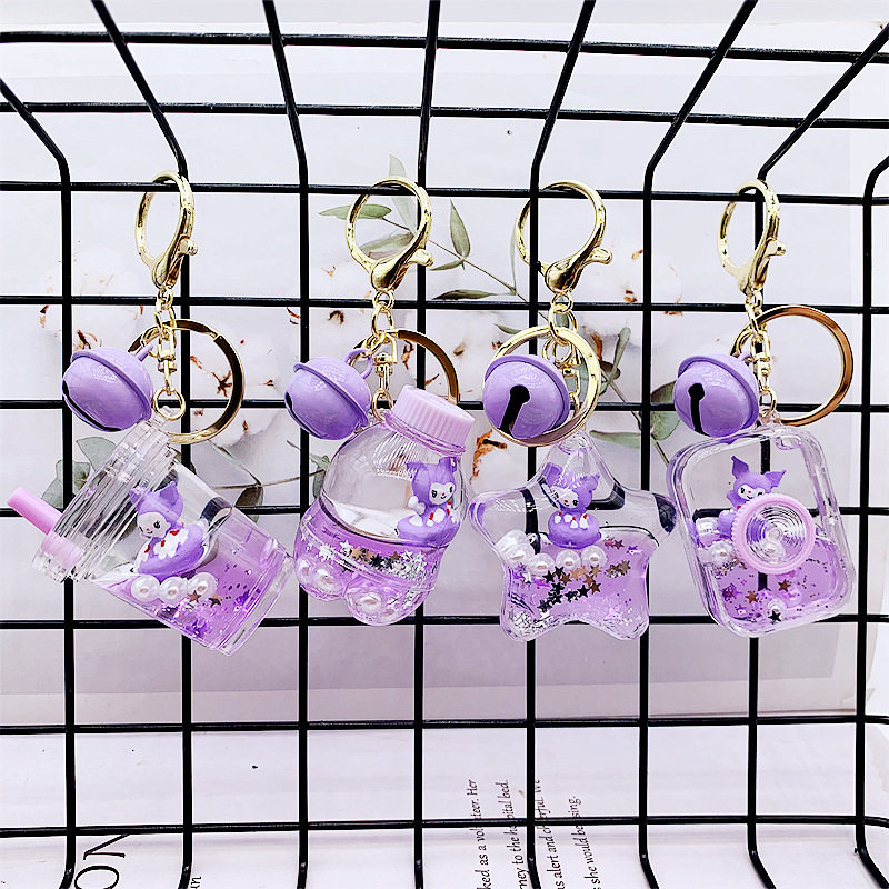 📚 创意流沙液体入油库米公仔挂件奶茶杯钥匙扣亚克力力书包挂饰