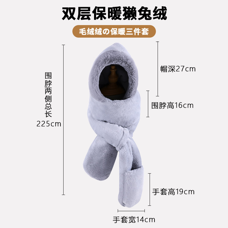 📚 帽子男款冬季帽子围巾一体男冬天毛绒男士骑车保暖手套三件套防寒