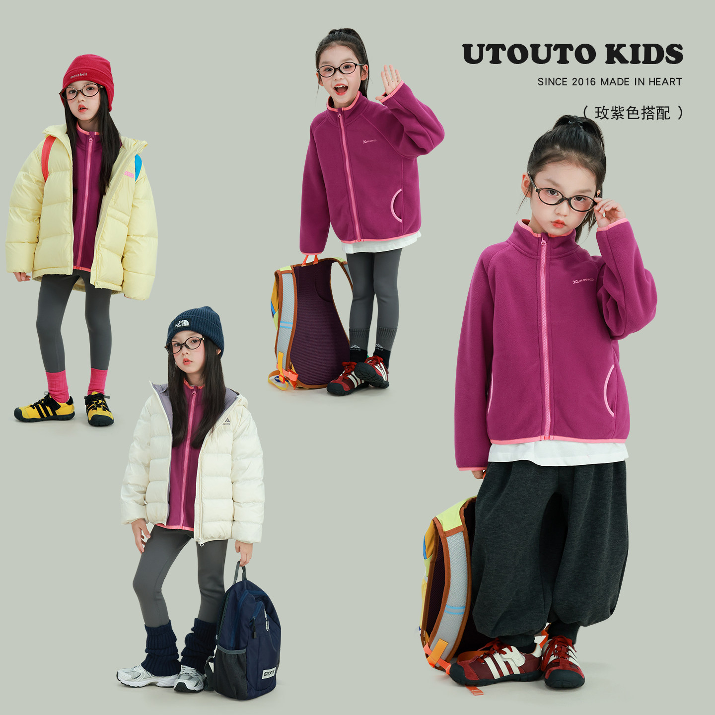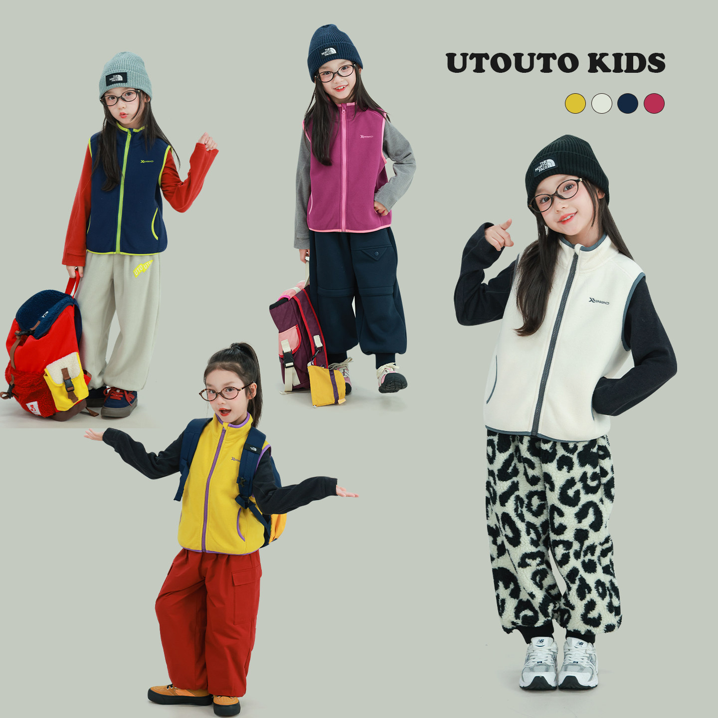 📚 大耳象女童撞色拉链毛绒马甲外套冬新款宝儿休闲保暖运动校园上衣