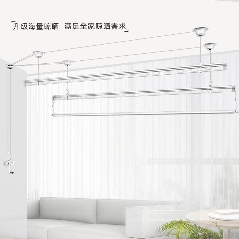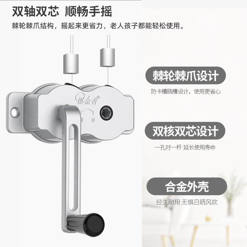 📚 郁金香手动晾衣架阳台手摇升降三杆晒衣架家用双杆式晾衣杆凉衣架