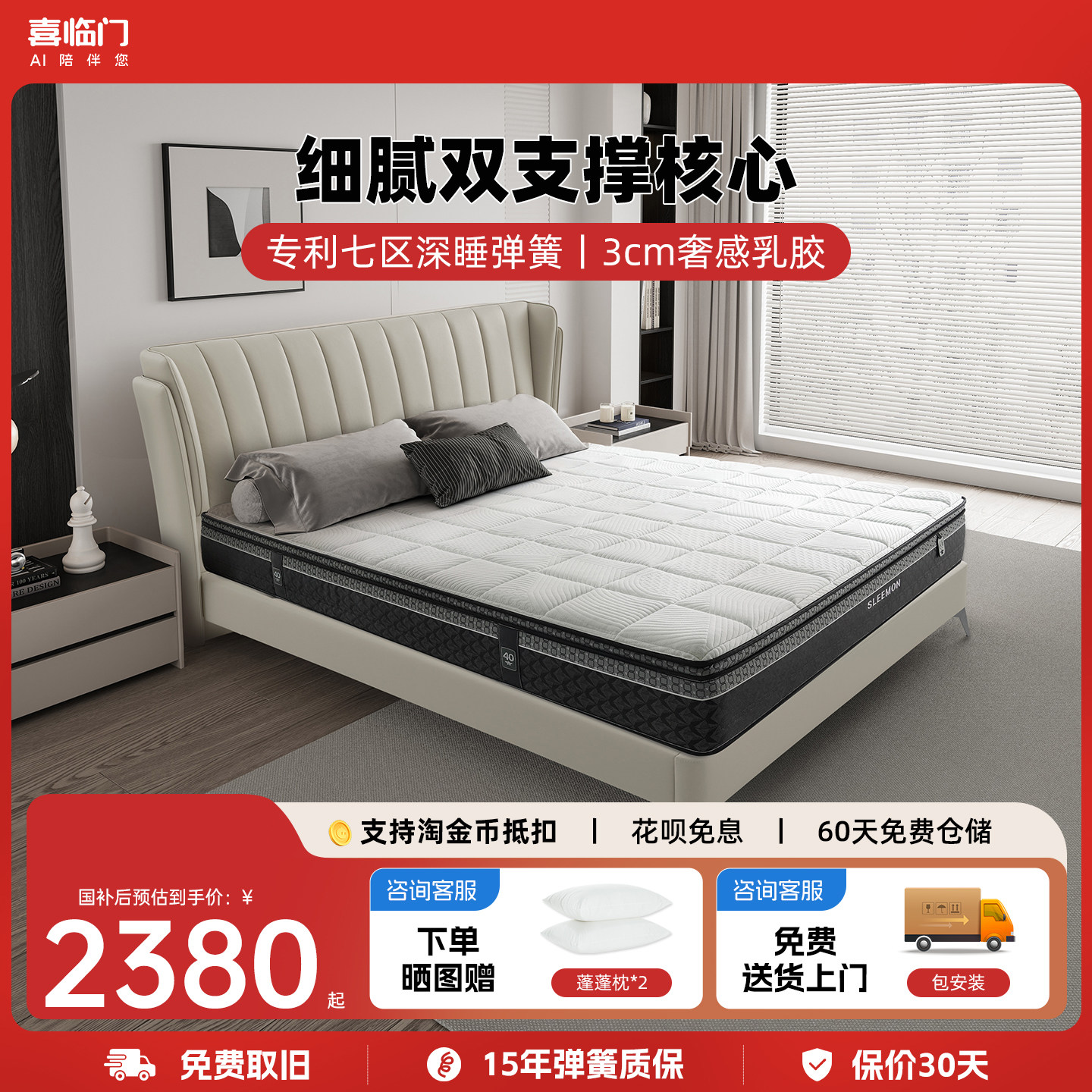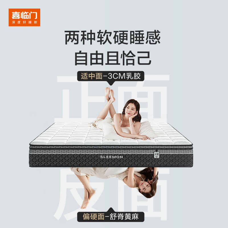 📚 【白骑士喜礼】喜临门席梦思独袋弹簧舒脊黄麻乳胶床垫官方旗舰店