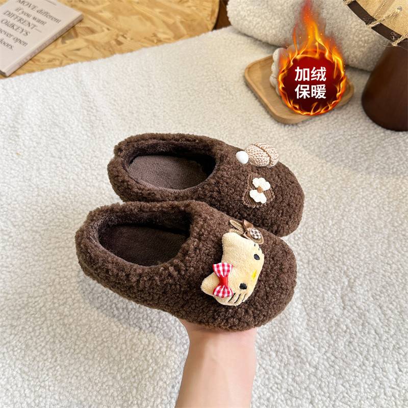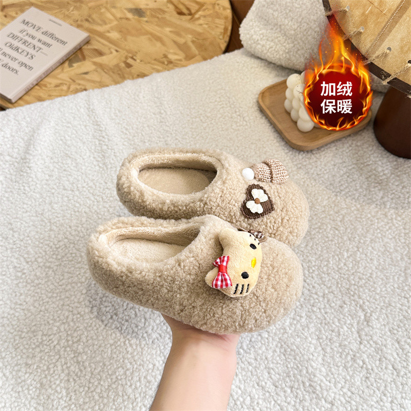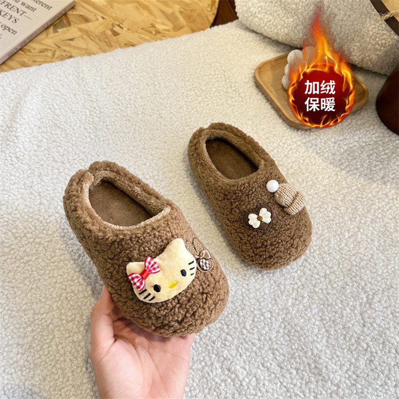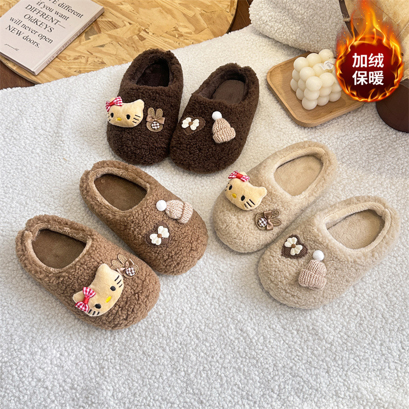 📚 女童可爱卡通kt猫玩偶2025冬包头羊羔毛棉拖鞋外穿加绒保暖毛毛鞋